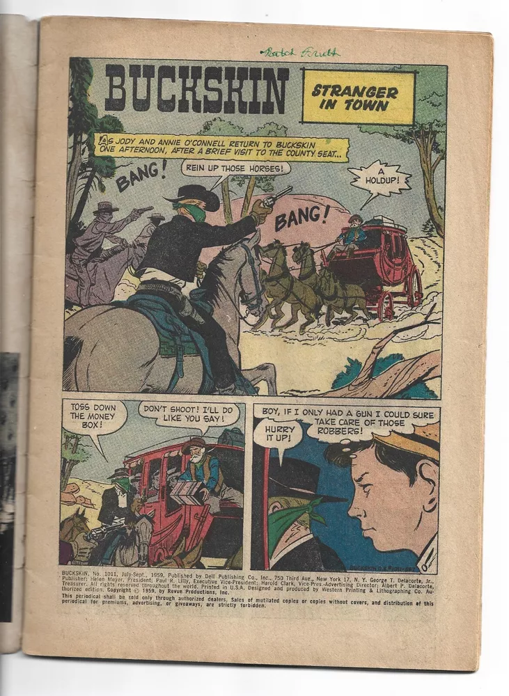 Your buying the exact comic listed below. Name: BUCKSKIN Issue & year: #1011, July 1959 Publisher: Dell (Four Color) Condition: F/VF, Comic is fully intact with no loose pages. Back cover some scribbling top of cover and front cover has a price in ink marker from previous owner. Take my grading with a grain of salt as I'm not a Grader, Comic could be better or worse but I think I'm doing good as I have no complaints. NOTE: MOST OF MY PRICES ARE BELOW CBG VALUES OR WHAT YOU MIGHT FIND IN A COMICBOOK STORE. Comic is bagged with backing board. Comics are mailed securely in a cardboard envelope. We offer combined shipping on all purchases. Use this to your advantage by purchasing multiple items and paying only a single shipping charge. It is usually more beneficial to make purchases this way. INSTRUCTIONS: In order to access combined shipping please make your purchases on Ebay.ca and from a Desktop computer. Go to Ebay.ca and it should give you the option to "Add items to cart" after doing so you simply go to checkout and "Request invoice from seller". This will prompt your commitment to the purchases and allow me to revise the invoice to allow you to enjoy the shipping discounts. SHIPPING BY CANADA POST. Ships from Stellarton, Nova scotia, Canada Robert Jollimore