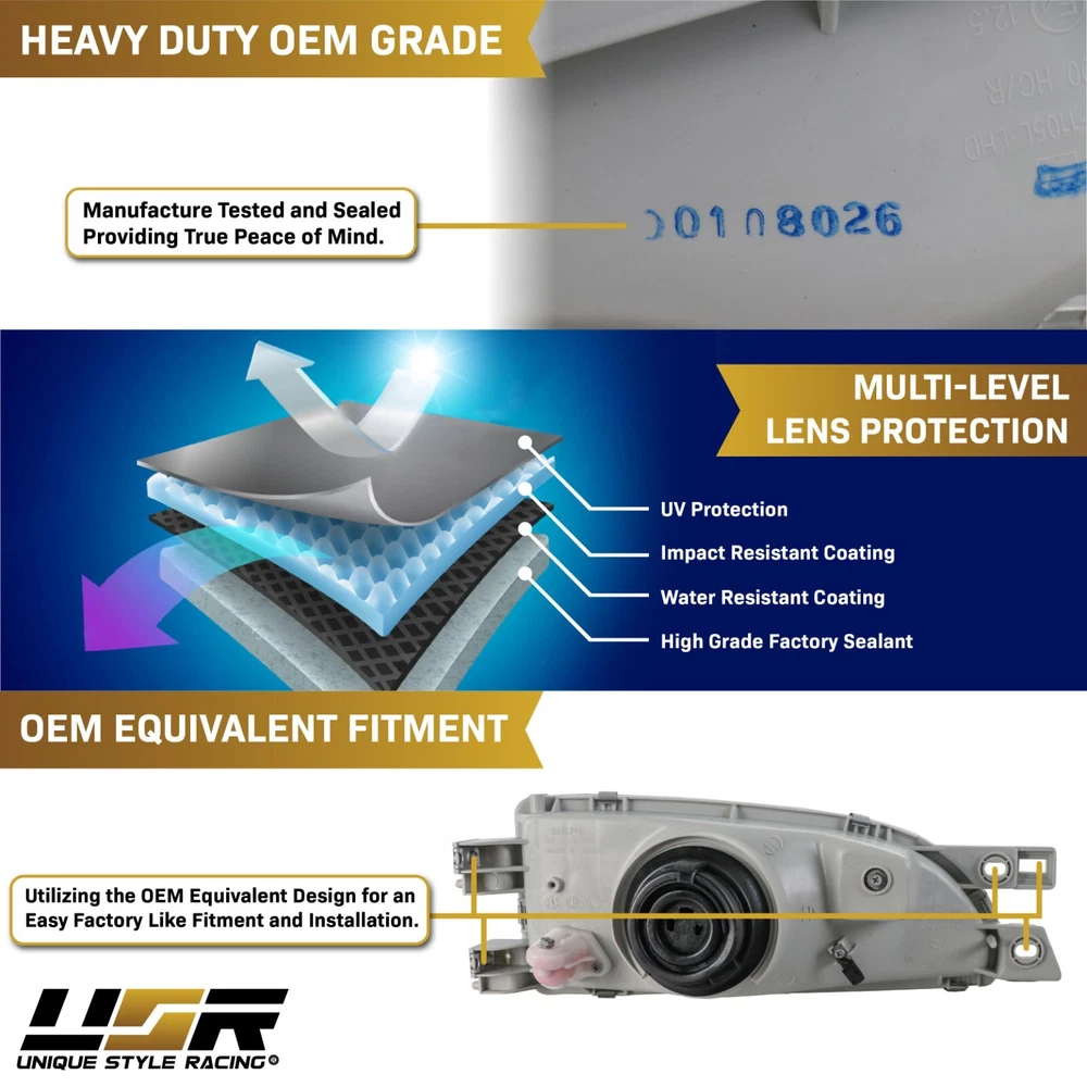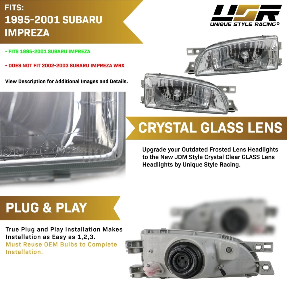 ATTENTION: For fitment and address issues, we will contact you through eBay message system first and by phone. If we are unable to get a hold of you or we cannot ship your order within 24 business hours after your order is placed, we will cancel the purchase instead. Please be sure you check product info carefully and enter your address correctly before purchase. Thank you. visit our store | View feedback | Sign up for our newsletter | Customer Support: Message Via Ebay Please read and understand our complete description and policies/terms below prior to buy. HL-SU-IMP-95-LHD-C-CHR-SET DESCRIPTION Product Details: This listing is for a BRAND NEW set (2 Pieces, Left and Right) of "JDM Crystal" Style Chrome Housing Glass Lens Headlight Fits For: 1995-2001 Subaru Impreza TO REPLACE OEM # Left Side 84001FA451, 84001 FA451, 84001-FA451 SU2502117 Right Side 84001FA441, 84001 FA441, 84001-FA441 SU2503117 Features: * Chrome Housing Clear GLASS Lens Upgrade Assembled and Sealed by the Manufacture! * A True JDM Style Clear Upgrade with the Needed Wire Adapters for US Spec! * Glass Lens provide UV Protection and High Impact Resistance * Made by ISO2001 certified manufacturer, Excellent Quality! * No Re-Wiring Needed, True Plug and Play! No Error after installation. Specs: * Brand: DEPO / Unique Style Racing (USR) * Type: "JDM Crystal" Style Upgrade * Color: Chrome Housing * Lens: Glass * Bulb Specifications: H4 High/Low Beam * Bulbs Included: No In the Package: * x1 Pair of Front Headlight Assemblies (Left + Right) Special Note: * Reuse Bulbs to Complete Installation. Important Notes: - Although DIY is possible, CERTIFIED & LICENSED PROFESSIONAL INSTALLATION is HIGHLY SUGGESTED . - We do not provide Installation Instruction except the manufacturer's original ones if there is any. - Direct OEM STOCK Replacement - No modification needed to fit the specified years / make / models / trims. - Our Products Are SPECIFICATION SENSITIVE and we ship DOOR to DOOR ONLY. Any package being sent to "FORWARDING COMPANY" is not our responsibility. - You, as the buyer / consumer are solely responsible for all damages and losses. - We highly recommend you to buy new gaskets prior to install the product you purchased from our company since the stock ones by now should have been worn out, therefore, it is easily allowing moisture to get in and create condensation which is NOT due to the product that has leak, but bad gaskets. - Some EXCEPTIONS For Warranty Claims: A.) No visible / physical damages to the product and / or warranty is void, B.) Alteration to the product will result in termination of warranty, C.) Be sure the stock gaskets or rubber seals are not torn and worn as you will need to reuse them when you replace your stock lights with ours. You will also be asked for photos that documents any *leaking*, *misting*, *fogging up* and *condensation* issues, as well as the condition of your stock gaskets or rubber seals. and lastly, D.) All of our lighting assemblies are NOT compatible with XENON HID and LED-type bulbs. Please use either incandescent or halogen bulbs per advertisement. - Please be sure to check the provided PHOTOS, read the DESCRIPTION and ask QUESTIONS before purchase. Thank you for your business. ABOUT US We're genuine and honest sellers and we carry great selection of the quality products to choose from, at a competitive pricing. Every order is carefully packaged and inspected by three of our staff using the latest technology to ensure safe shipment to you. We value good relationship with our customers and if you have any question or concerns regarding a sale, please do feel free to contact us first. Please do check your ebay message often for your order status, we will contact you for any delay that is caused by the payment or shipping complication arises from processing your order. We hope you enjoy your purchase! PAYMENT We accept payment by: Paypal. We accept PAYPAL only at this moment for all ebay transactions and MUST ship to paypal's listed address. 1.) If you are using eBay’s checkout system, please ensure that your registration information is current and will match what you have on PayPal. We will not be able to accommodate to change the original address we receive at the time of payment with an alternative one, once the transaction is completed via eBay and PayPal. 2.) We are required to ship to the address attached to your payment only. 3.) We will not be able to ship to an alternative address besides the original address shown on your PayPal payment detailed page. 4.) Please DO read and understand the policies / terms prior to buy to avoid any future discrepancy from occurring. Thank you for your cooperation! SHIPPING Please read and understand our complete policies/terms below or ask question if you have concerns prior to buy. 1.) Free shipping only applies to the listings that have the “Free Shipping” icon displayed and for completed transactions. Any canceled, incomplete, refused or undeliverable packages are subjected to a 20% re-stocking fee + all shipping related fees. 2.) Shipping costs incurred are non-refundable under any circumstance. Shipping costs are incurred and paid to the shipping courier and they are not refundable. 3.) We DO NOT ship to APO / FPO, GUAM, MP, PUERTO RICO (PR) and VIRGIN ISLAND (VI) 4.) INTERNATIONAL COUNTRIES: Buyer is responsible for all Brokerage Fees, Taxes & Duties - which may be charged upon delivery. Please contact your local shipping agent to determine your estimated taxes & duties. 5.) Pick up / Will Call service is not available for all ebay transactions. 6.) Shipping service fee is NOT refundable if the merchandise is shipped correctly as pictured and described. Please make sure you, as the buyer, understand this term prior to buy. 7.) EXTRA protection to guarantee the package arrived / delivered in safe and sound condition is $2.50 additional and is optional. We strive hard to ensure ALL of our packages arrive safely and intact by hav