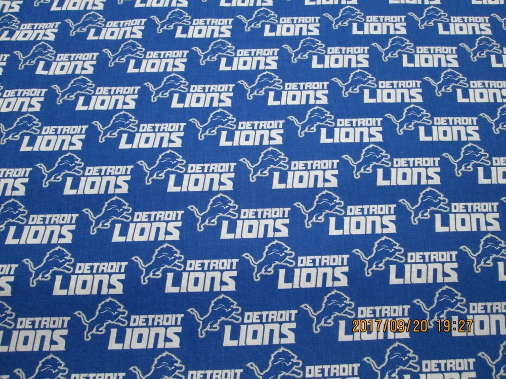 Model: LIONS Material: Cotton Non-Domestic Product: No Unit of Sale: 1/2 yard Modified Item: No Fiber Content: Cotton Square Size: N/A Handmade: No Width: 46'' to 60'' Features: Colorfast Pattern/Style: NFL Color: Multi-Color Brand: Fabric Traditions Theme: NFL Pattern / Style: Sports, Teams Pattern: Geometric UPC: Does not apply SiteWideCondition: New Suitable For: Accessories - Bags/Purses, Accessories - Gloves/Mittens, Accessories - Hats, Apparel - Blazer/Suits, Apparel - Coat/Jacket, Apparel - Dance/Sportswear, Apparel - Dress, Apparel - Everyday Clothing, Apparel - Loungewear, Apparel - Sari gtin13: Does not apply Thread Count: N/A Fabric Weight: Medium Length/Amount: By the Yard MPN: N/A Type: NFL FABRICS Custom Bundle: No