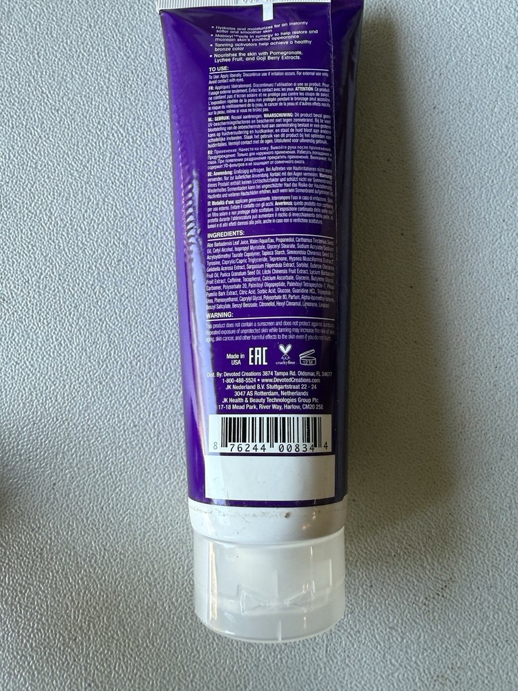 Sun Protection Factor (SPF):SPF 0Size:9 Fl Oz (Pack of 1)Model:SG_B00CSM4O00_USBody Area:Face, Full BodyType:SELF_TANNERSkin Type:Regular SkinBrand:Devoted CreationsVolume:9 fl ozUPC:876244008344Country/Region of Manufacture:United StatesFeatures:Animal Cruelty-Free, Vegangtin13:876244008344MPN:Does not applyPeriod After Opening (PAO):12MFormulation:Cream, LotionColor:White
