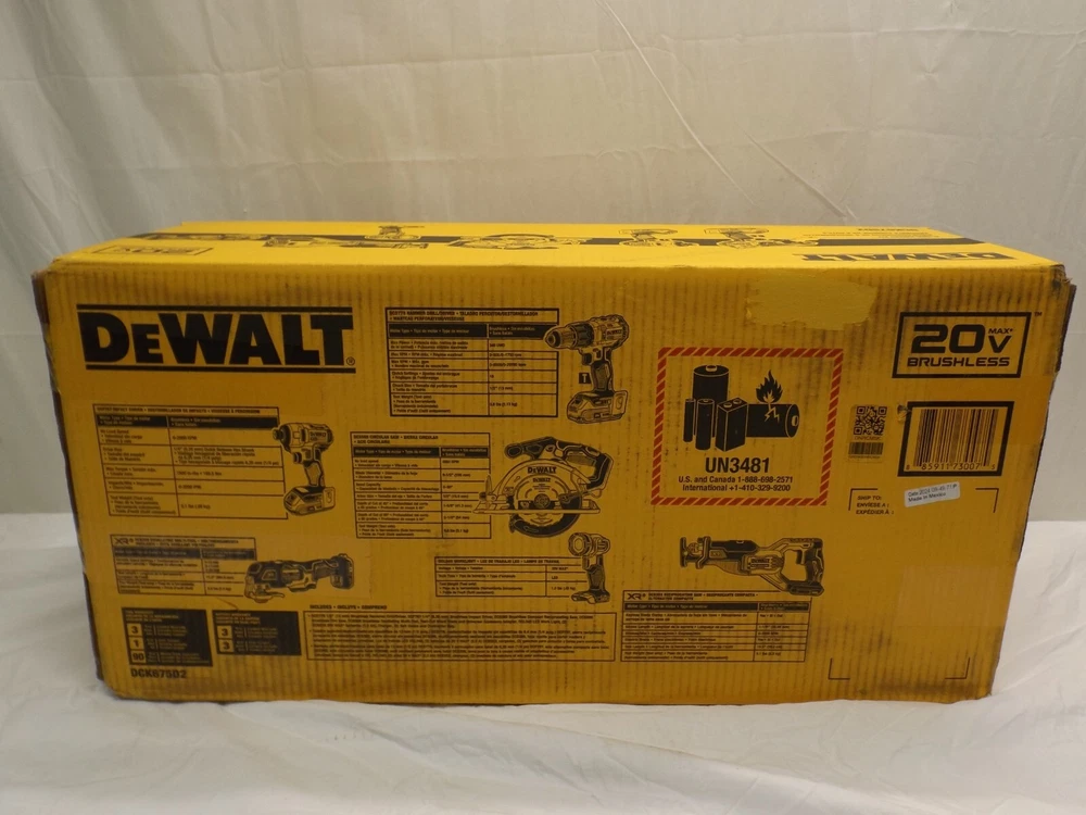 DEWALT 20V Max Lithium-Ion Brushless Cordless 6 Tool Combo Kit (DCK675D2) This power tool set is brand new! 6 piece set that includes. Impact DCF787 Drill/Driver DCD778 Circular Saw DCS566 Multi-Tool DCS356 Reciprocating DCS382 Flashlight DCL040 2x 2.0Ah Batteries Charger Carry Bag Item comes as pictured in listing. If you have any questions or concerns feel free to contact us. Please scroll below pictures for our policies. Please note, we will not ship to freight forwarding companies. If you have specific questions about items you will need to allow time for our administrator to get that information from the store the item is located. So please ask as early as possible. Payment Methods Accepted Free Shipping Free shipping will be offered for Domestic shipping only. We use UPS ground for shipments within the United States--including Alaska, Hawaii and Puerto Rico, but these 3 will accrue an additional charge when the auction is marked as "free shipping". For customs, the declared value of a shipment will be the amount of the winning bid. Because we use UPS, we cannot ship to post office boxes, FPO boxes, APO boxes, or to U.S. territories as UPS ground is not able to deliver to them. The item description will contain the shipping details. We must receive payment in full for the item before we will ship it. Once we receive payment, we ship items in the most prompt manner possible. At First National pawn, your complete satisfaction is our goal, and we will do everything possible to ensure that your purchase arrives quickly and undamaged. Descriptions We deal in a wide variety of used merchandise. So, we are very frequently less knowledgeable about the items that we are selling than our customers are. To help correctly identify the items in an auction, we will include a description of any markings on them that appear to be meaningful. We will describe any specific defects that we have found. The pictures in the auction are of the item(s) that will ship, so if the pictures provide more detail than we have in the auction title and description, then the pictures are correct. Domestic Shipping Only We will ship this item only within the United States and its territories. Any items marked "free shipping" being shipped to Alaska or Hawaii will accrue an extra surcharge depending on the weight and dimensions of the package. We will not ship this item to any other countries. We will use UPS ground for shipments to US States, US territories and to Puerto Rico. We use UPS for all shipments therefore we can not ship to PO, FPO and APO boxes. The shipment will be insured against loss/damage for the amount of the winning bid. Please refrain from using a Freight Forwarding company as we will cancel any order with a shipping address to one of these companies. Feedback We expect our customers to be free and candid in leaving feedback about the transaction at their leisure. We will send a feedback reminder three weeks after we have received payment for the item, we will reply to feedback that we receive if we think that further explanation is necessary. We will post positive feedback after we have shipped the item. Payments Payment must be in US dollars. We accept PayPal, MasterCard and VISA. We trust our customers to pay for auctions they have won, which is why we allow 21 days if the customer contacts us within 7 days from the time of the auction ending and makes arrangements for a late payment. During that time, we will email payment reminders every seven days. If we receive payment while a dispute is open, we will close it, ship the item and leave positive feedback. Questions Questions about items will be forwarded to our store where the item is located. It may take a few days for a response, so please ask early. Returns And Refunds We think that basically good people in an honest and open environment, who treat each other as they would like to be treated, can work out returns and refunds. We've structured our return policy to be fair all around. If we make an error, then we will make it good if you let us know about it quickly. Inspection Period In order to be eligible for any refund, we must hear from you within fourteen days of the date of delivery of the merchandise. Our Refund Offer If the item differs substantially from how we described it, then we will offer you either a full refund (you send the item back) and/or a partial refund (you keep the item). If the item is as we described it, and you want to send it back anyway at your expense, then we will offer to refund you eighty-five percent of the purchase price. If the item was damaged during shipment, we will offer a full refund. It may or may not be necessary to return the item to us, depending upon the extent of damage and insurance requirements of the carrier. Sending The Item Back To Us Any item that you send back to us must have a Return Merchandise Authorization (RMA) number. The RMA number (and the address to send the item back to) will be provided in our refund offer. In order to issue a refund, we must receive the item within fourteen days of issuing the RMA number. Sending The Money If you paid via PayPal your refund will be issued through PayPal, if you paid via different method we will issue you a check. Refunds will be issued within 7 days of either receiving the item back or agreeing on a partial refund. Time Line We will complete the refund within thirty days from first hearing of the problem. This allows for a few days of emailing, time for the item to be returned to us if necessary, and time for us to get the check mailed. Shipping And Handling Since we cannot personally hand items to our on-line customers, we must rely on a shipper to deliver them. We want one that is fast and reliable and that can provide as much information as possible about the delivery. We and our customer must be able to track the shipment. The shipment must be insured against loss and/or damage. The item must be packaged so that it can survive bumps during