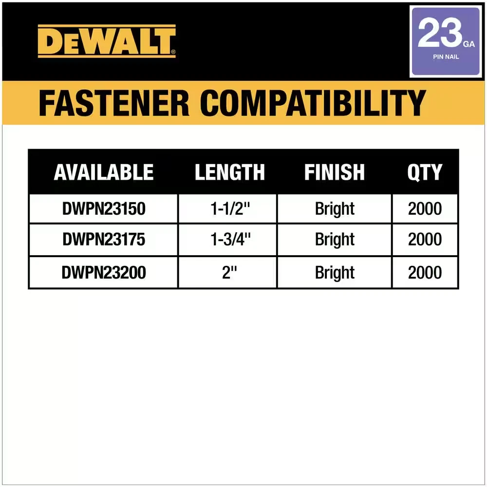 This DEWALT pin nailer is a game-changer! Super lightweight yet powerful, it drives pins flawlessly without jamming. The 2.0Ah battery lasts forever, and the ergonomic grip reduces fatigue. Perfect for trim work—super precise and easy to handle. DeWalt quality at its best!