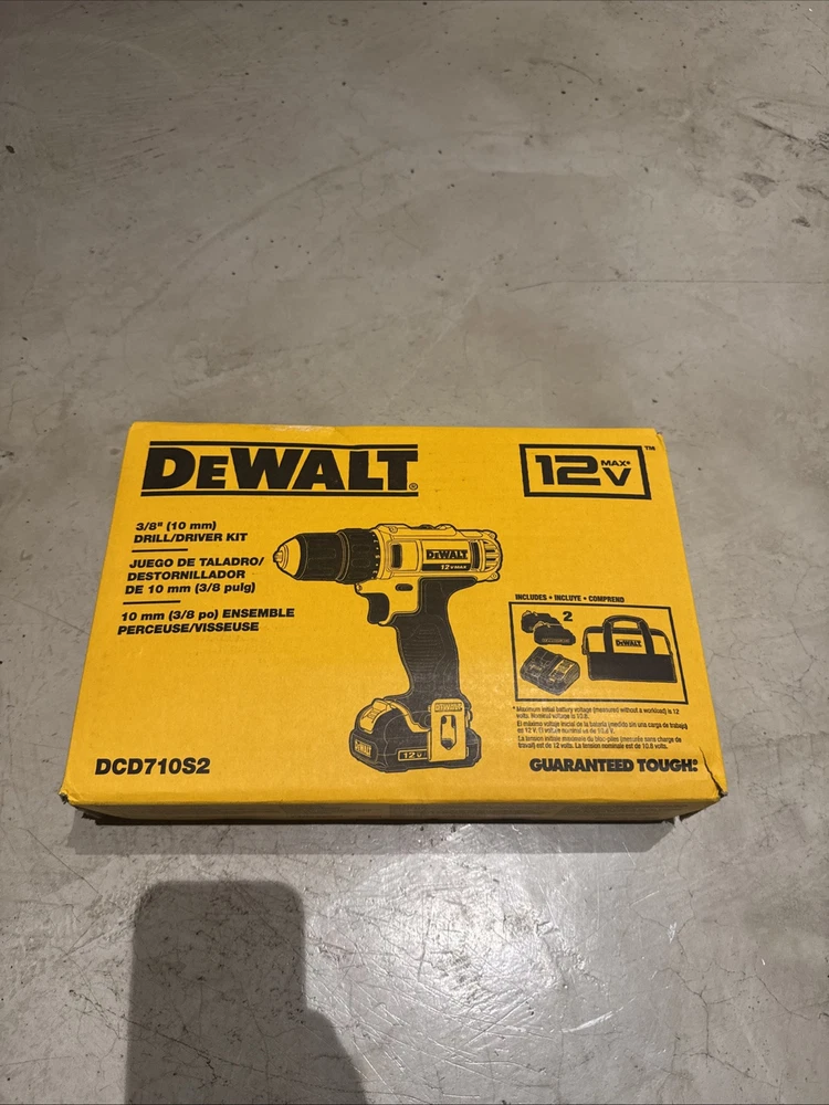 Drill countersink holes or pilot holes with this DEWALT brushless drill. Experience efficient runtime and enhanced performance as the drill comes with a brushless motor. Built with a LED light, get this compact drill and use it to complete projects in poorly lit spaces. The ergonomic handle of this drill offers comfort and enhanced grip. This DEWALT 12-volt drill kit features one charger, one soft case and two 12 V batteries. DCD701 12V MAX Brushless 3/8-in drill/driver has 32% more power (when using DCB122 2 Ah battery vs DCD710 drill/driver using 1.3 Ah battery) Brushless motor for efficient performance and runtime 3/8-In ratcheting chuck for a wide variety of bits 2-Speed transmission and 15 clutch settings for a variety of applications LED foot light for superior visibility Lightweight at 1.9 lbs (tool only) Kitted with 2.0 Ah batteries with state of charge indicator Belt clip conveniently allows user to carry tool while not in use Includes DCD701B 12V MAX Brushless 3/8-in drill/driver, two DCB122 12V MAX batteries with state of charge indicator, DCB112 12V and 20V MAX charger, belt clip and tool bag