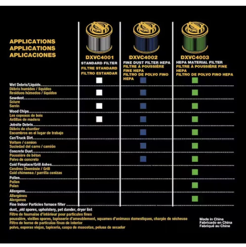 DEWALT DXVC4001 4 Gallon Wet Dry Vacuum Reusable Replacement Filter