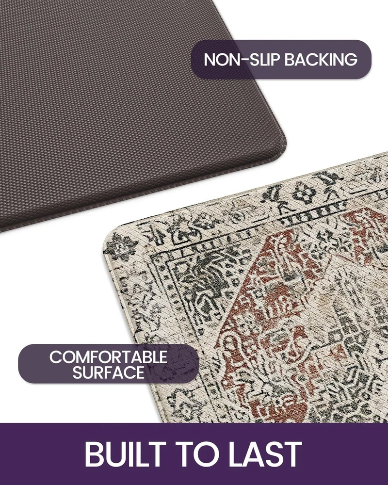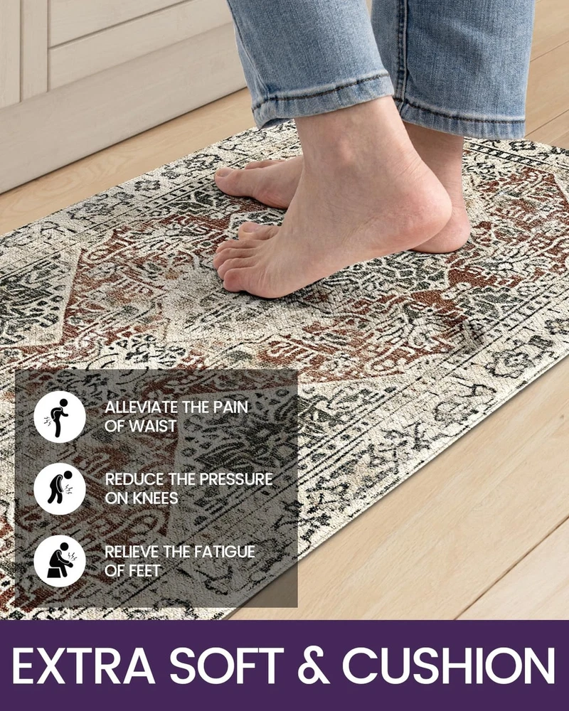 DEXI Anti Fatigue Kitchen Mats for Floor, Cushioned Kitchen Rugs Thick Long Non Skid Waterproof Kitchen Runner Rug Boho, Comfort Mat for Standing Desk Office, Sink, Laundry, 23"x59", Boho Brown/Multi Product Details Size: 59"L x 23"W x 0.4"Th Color: Boho Brown/Multi Brand: DEXI MPN: Does not apply UPC: Does not apply EAN: Does not apply Color: Boho Brown/Multi Brand: DEXI Special Feature: Waterproof, Fade Resistant, Stain Resistant, Non Slip, Washable Pattern: Floral Product Care Instructions: Hand Wash Only Color: Boho Brown/Multi Brand: DEXI Special Feature: Waterproof, Fade Resistant, Stain Resistant, Non Slip, Washable Pattern: Floral Product Care Instructions: Hand Wash Only Item Thickness: 0.4 Inches Product Dimensions: 59"L x 23"W x 0.4"Th Manufacturer: Derxi Number of Items: 1 Item Weight: 5 pounds Country of Origin: China Date First Available: August 15, 2024 Premium Texture : DEXI kitchen mat is made of sturdy surface and wear-resistant bottom design, it ensures long-term use in high-traffic areas. The thickness is 0.4 inches (10mm), which takes into account durability and comfort. Please pay attention to the thickness before ordering the kitchen rugs Ultimate Comfort Experience: The anti fatigue mats for kitchen floor relieve fatigue well, especially suitable for people who are cooking in the kitchen or standing for a long time, providing exceptional support for feet, knees and backs, and improving overall comfort Anti-Slip Design: The top has a textured design, the kitchen runner rug is crafted with non-slip backing to ensure safety on various floors, preventing from slipping or falling. Make sure the floor is clean and dry before use to achieve the maximum anti-slip effect Easy to Clean: Our kitchen mats for floor are ease of cleaning and fade resistant, simple wipe with a damp cloth or sponge, or sweep away dirt and dust. The cushioned kitchen floor mat will continue to provide excellent performance after cleaning, allow you to have more time to enjoy yourself Versatile Use: The boho kitchen rug features floral pattern which blends perfectly with home decoration, the unique design and comfortable standing mat complement each other, suitable for most occasions and multiple areas, such as kitchen, laundry room, or office