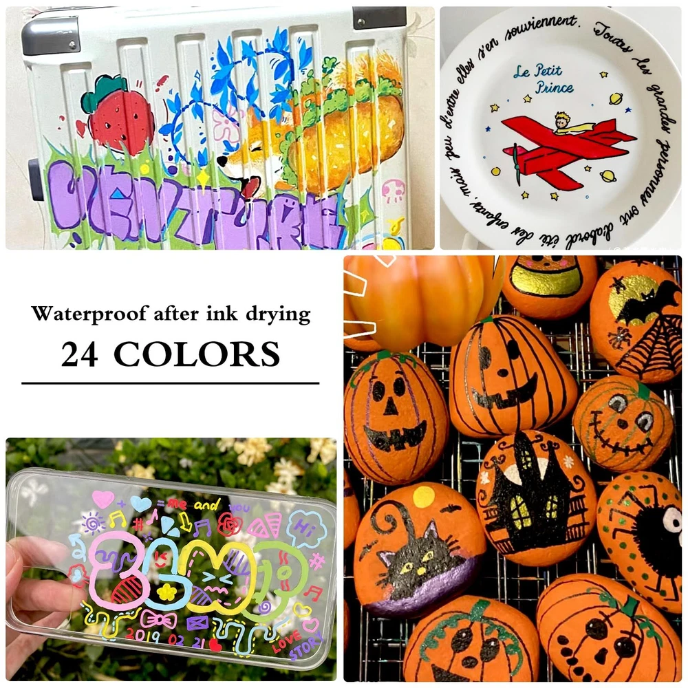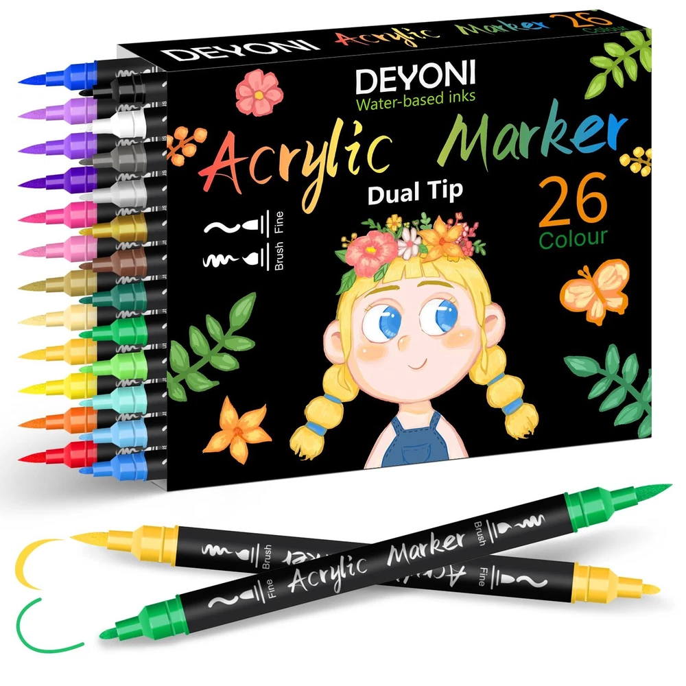 ใ26 ๐๐๐๐ง๐๐ฃ๐ฉ ๐๐ค๐ก๐ค๐ง๐จใRich color range means more mixability and fun. dual tip acrylic paint pens are long-lasting and opaque ink,waterproof .quick drying characteristics ensuring that your artwork is smudge-free, and you can complete your project faster.perfect for artists,children,students,adults to use on arts and diy crafts projects. ใ๐ฟ๐ช๐๐ก ๐ฉ๐๐ฅ ๐๐๐ง๐ฎ๐ก๐๐ ๐ฅ๐๐๐ฃ๐ฉ ๐ฅ๐๐ฃ๐จ ใEach acrylic markers come with a 1-5mm brush tip and a 1mm fine tip.the dual tip design meets different coloring needs,the fine tip is suitable for outlining, fine line work,perfect for fine details on small projects. ใ๐๐๐จ๐ฎ ๐ฉ๐ค ๐ช๐จ๐ใThese paint pens have a new design, very easy to color, no need to shake and press the tip before use, just open the cap to use the pen. Reminder: please cover the pen cap in time after use and store it horizontally to keep the pen and ink smoother. ใ๐๐ช๐๐ฉ๐๐๐ก๐ ๐๐ค๐ง ๐ข๐ช๐ก๐ฉ๐๐ฅ๐ก๐ ๐จ๐ช๐ง๐๐๐๐๐จใDual tip acrylic paint pens can work well on variety of surfaces.such as rocks painting,fabric,ceramic, glass, wood, plastic, leather, canvas, resin, plaster,shoes,tire,blackboard and almost any solid surface.great for artists,students,teenagers & adult. ใ๐๐๐๐ฉ๐ช๐ง๐๐จใThey are paint,won't bleed and won't soak through or warp the paper.And could actually highlight over a dark color.The color saturation is amazing it's not sheer at all.It dries fast and feels smooth. ใ๐ซ๐๐๐ ๐๐๐ ๐๐๐๐๐๐๐ ๐๐๐๐๐ ๐๐๐๐ใCompared to a single headed pen, it makes it more convenient for you to use and quickly capture instant artistic inspiration. ใ๐๐๐๐ ๐๐ค๐จ๐ฉ ๐๐๐๐๐๐ฉ๐๐ซ๐๐ฃ๐๐จ๐จใCompared to a single headed pen, you only need to pay about half the price to have different line thicknesses