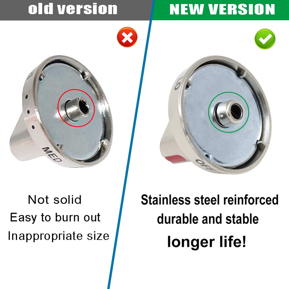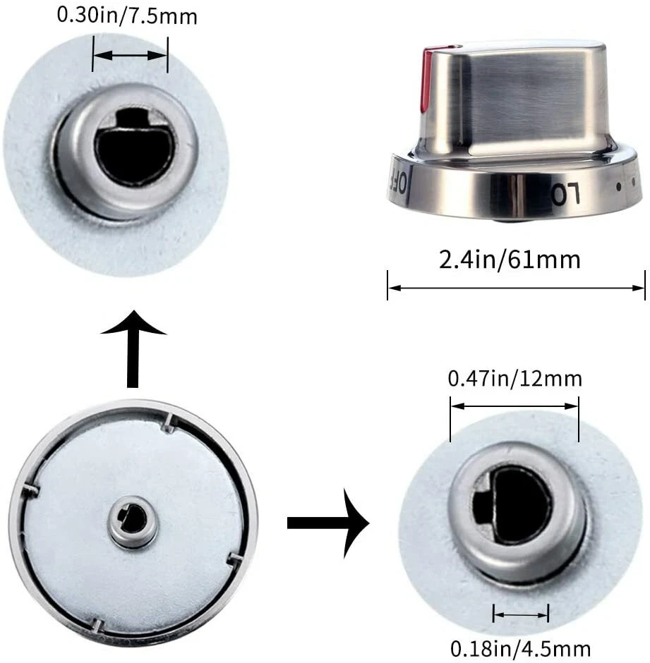 5pcs DG64-00472A / DG64-00347A stainless steel knob for Samsung DG64-00472A / DG64-00347A Replaces Part Number Samsung FX510BGS/XAA-00 Samsung FX510BGS/XAA-01 Samsung FX510BGS/XAA-02 Samsung NX58F5300SS/AA-00 Samsung NX58F5300SS/AA-01 Samsung NX58F5500SS/AA-00 Samsung NX58F5500SS/AA-01 Samsung FX710BGS/XAA-00 Samsung FX710BGS/XAA-01 Samsung FX710BGS/XAA-02 Samsung FX710BGS/XAA-03 Samsung FX710BGS/XAC-00 Stainless steel knob for Samsung Package contains: 5 Piece DG64-00347A Dial Knob. Size: 2.4" Diameter, 1.6" Height Reinforcement ring According to user feedback, the new upgrade is back! Add reinforcement ring for longer life! Reinforcement ring Pull off your old control dial and then pop the new one into place. You will know how it feels after upgrading! Reinforcement ring old version: Without reinforcement ring, it is easy to damage. new version: Add reinforcement ring, higher quality and stronger. Manufacturing process improved! Carefully polish every detail, and strive to give each customer better use and enjoyment! The replacement part is made of good quality material and well-tested by the manufacturer.Non original aftermarket part. Replacement your broken range knobs, inexpensive way to fix or repair a range , save a lot of money from buying a new stove.