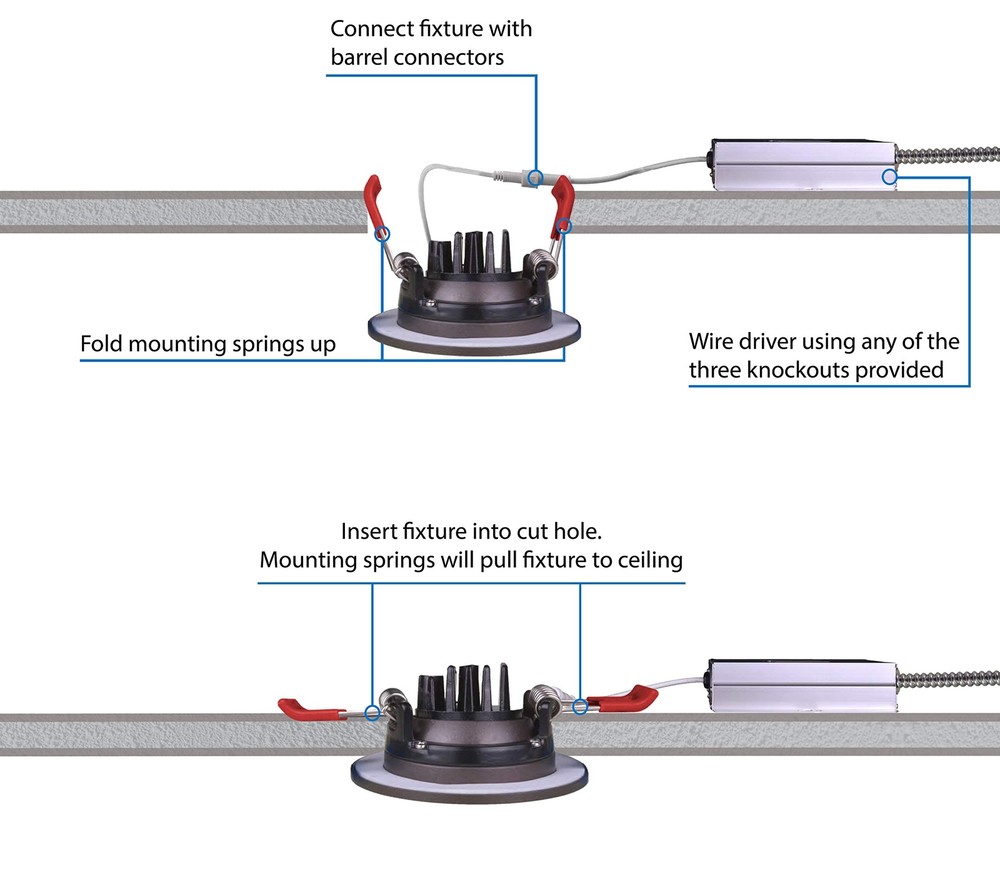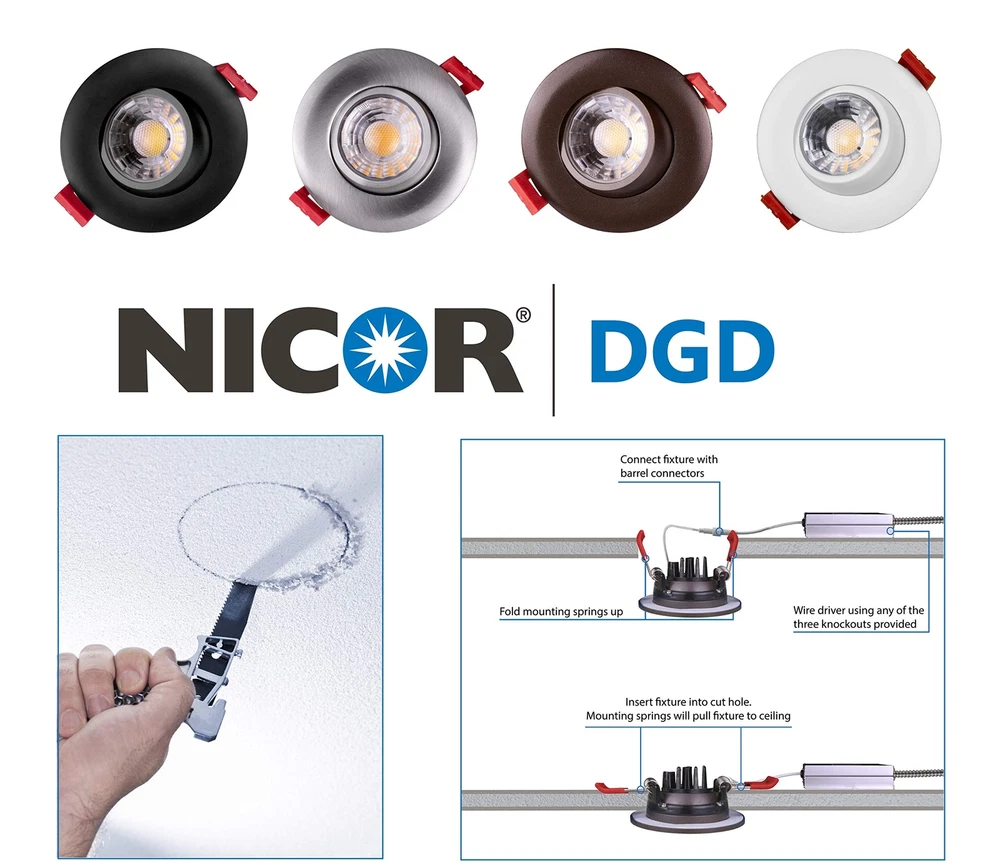 The DGD2 LED Downlight Gimbal features the latest in performance LED Downlight technology, designed to create an attractive visual aesthetic that's incredibly easy to install. The high-performance DGD2 is Dimmable and features a 90 CRI rating, with an R9 value exceeding 50, making it of the highest quality light fixtures on the market. Installation does NOT require a recessed housing or junction box, only a simple 2.125" diameter cut-out in the ceiling using the provided template. The elegantly designed fixture and off-board driver (included) allows for a more flexible installation and an increased lifespan thanks to the superior heat management system separated from the LED module itself. The DGD2 features adjustable spring-loaded retention tabs for a secure fit, eliminating the need for a recessed housing or junction box. Adding an adjustable, multi-directional light system to highlight artwork or architectural design features in your home just got easier. Freedom from having to use a housing or junction box allows this light to be installed in places others simply cannot. Available in Black, Nickel, Oil-Rubbed Bronze, and White. Choose from 2700K, 3000K, 4000K, or 5000K Color Temperatures. The DGD2 is Energy Star , Insulation (IC-), Title 24 Compliant, Damp-Location , and protected by 's 5-Year Limited . 2700K Color Temperature 356 Lumens 4.8-Watts Includes LED downlight module, plenum-cable, and off-board LED driver Includes 2.125-inch cut-out template