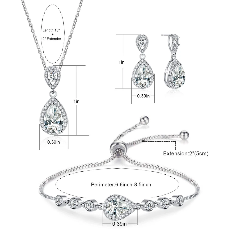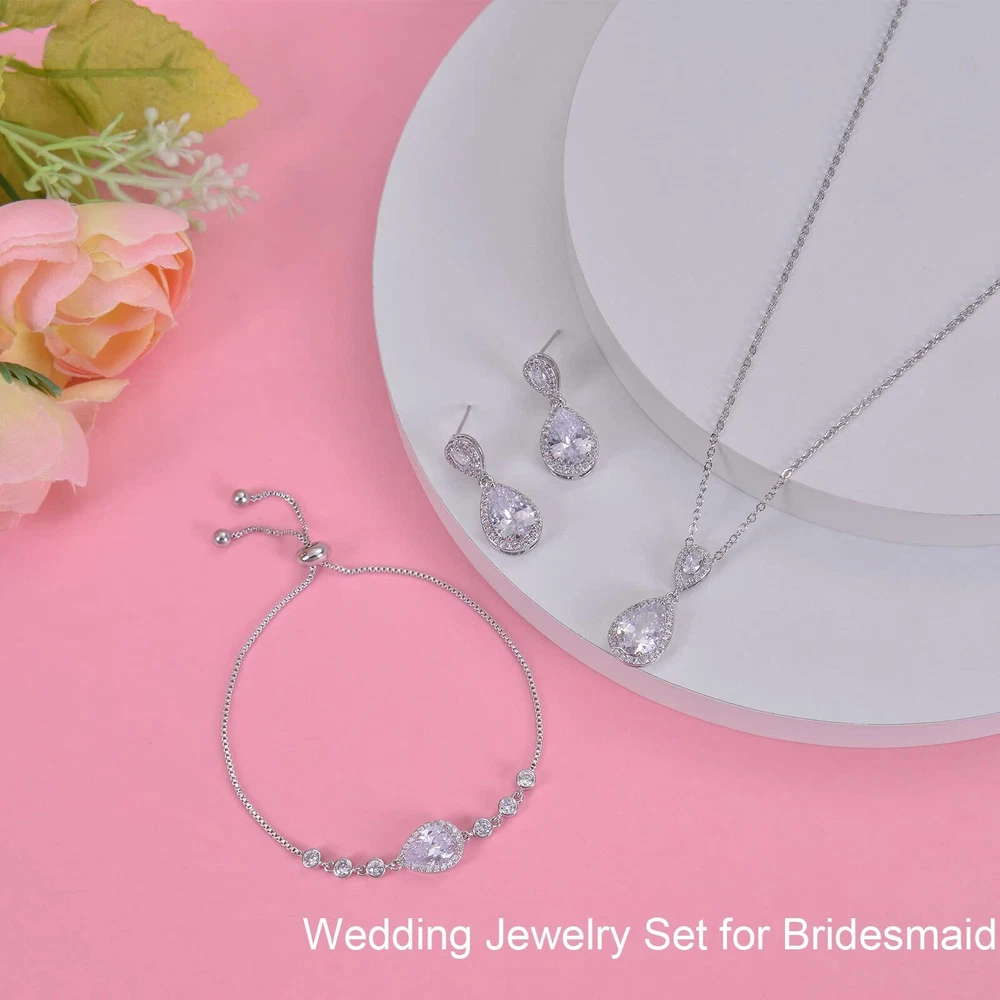 DHQH 4PCS Wedding Jewelry for Bridesmaid Cubic Zirconia Teardrop Necklace Earrings Bracelet Ring Set Bridesmaid Jewelry Set for Women Party Jewelry Gift Product Details Color: Teardrop jewelry-silver2 Brand: DHQH MPN: Does not apply UPC: Does not apply EAN: Does not apply Department : womens Date First Available : September 20, 2022 Brand, Seller, or Collection Name: DHQH Metal: Copper Material: Copper Gem Type: Cubic Zirconia Chain: Cable Clasp: Lobster Clasp Ring size: adjustable Number of stones: 3