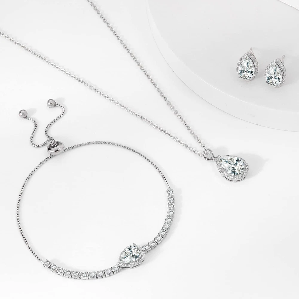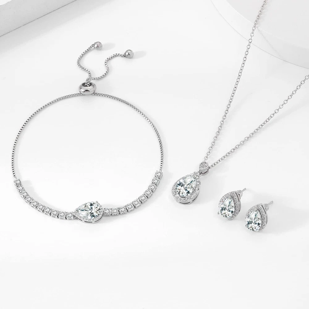 DHQH Cubic Zirconia Teardrop Necklace and Earring Set for Wedding with Crystal Link Bracelet Bridesmaids Jewelry Sets for Women Wedding Party Jewelry for Bridal Bridesmaid Product Details Color: A-Teardrop Jewelry-Silver Brand: DHQH MPN: Does not apply UPC: Does not apply EAN: Does not apply Department : womens Date First Available : February 24, 2022 Brand, Seller, or Collection Name: DHQH Metal: Copper Material: Copper Gem Type: Goldstone Clasp: Lobster Clasp Number of stones: 4 Bridesmaid Jewelry set Features: Easy to wear: Bridesmaid Teardrop necklace earrings and bracelet set is in quality material, and light to wear. After several days of accompanying the bride, you still not feel any burden on your neck or ears, giving you a comfortable wearing experience. Practical Bridesmaid jewelry set: The bridesmaid jewelry set for wedding is delicate and attractive, and you may give the set to your bridesmaids as souvenirs, then you both will remember the wedding and the happy time. Bridesmaid jewelry set Specifications: Material: copper/AAA Grade Cubic Zirconia Color: silver Quantity: 3 piece Size: as shown in the picture Package includes: 1 xBridesmaid Teardrop Bracelets 2 x Bridesmaid Teardrop Stud Earrings 1 x Bridesmaid Teardrop Necklace Notes: Manual measurement, please allow slight errors on size.The color may exist a slight difference due to different screen displays.To better maintain the jewelry set for wedding, please remove it before swimming, showering, or other water related activities.Small items included, please keep away from little children.
