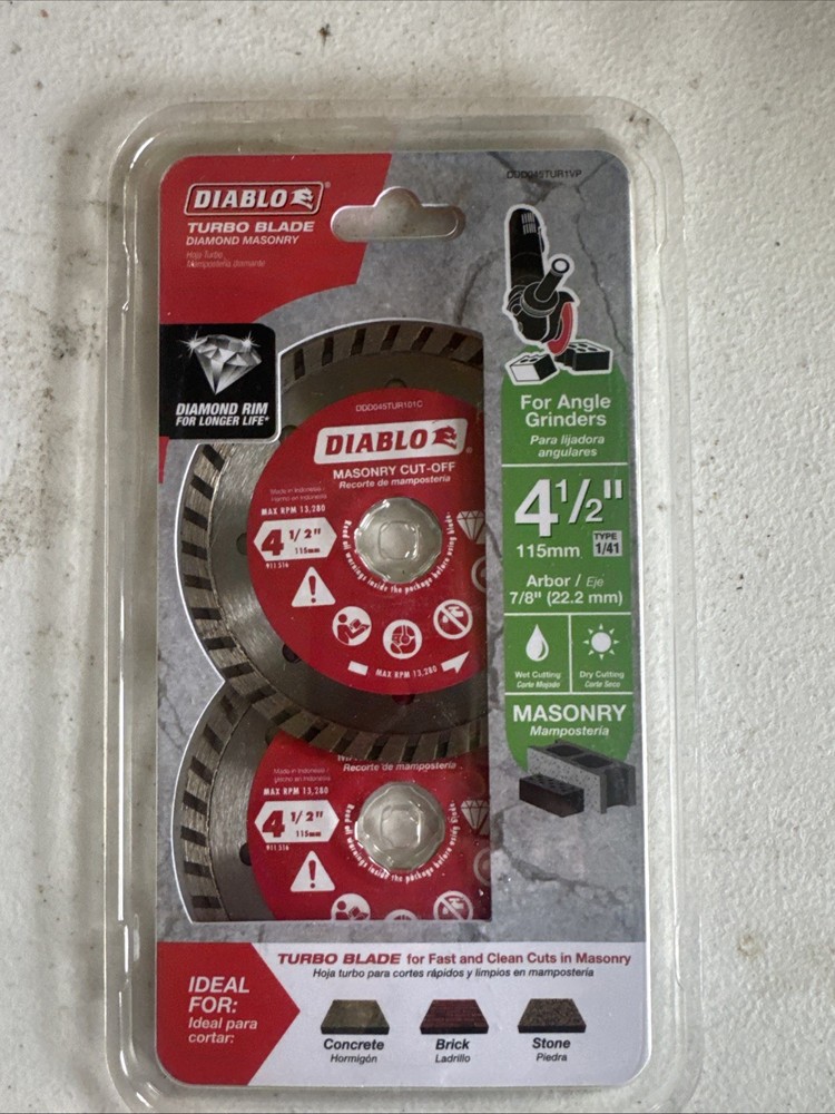 DIABLO 4-1/2 in. Turbo Rim Masonry Diamond Cut Off Blade Value Pack (2-Pack). Condition is New. Shipped with USPS Ground Advantage.
