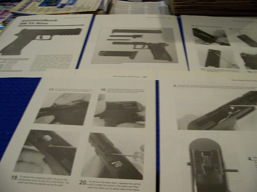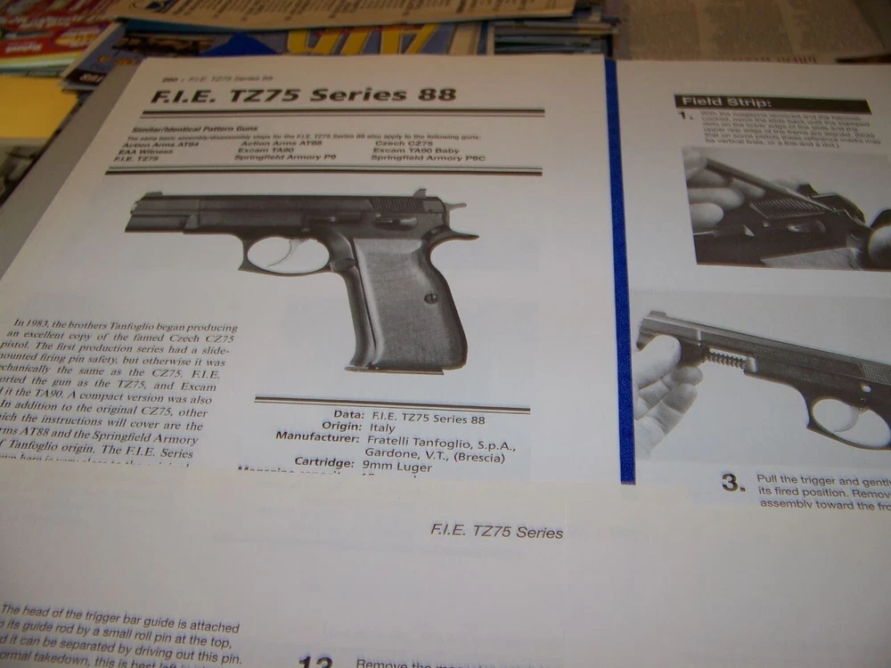 NOTE:..THESE ARE GREAT ARTICLES FOR DISASSEMBLY OF CERTAIN FIREARMS WITH DETAILED STEPS AND PHOTOS..HOWEVER THE RE-ASSEMBLY INSTRUCTIONS ARE JUST TIPS AND ARE VERY SHORT ..REASSEMBLY IS DONE IN REVERSE ORDER OF THE GUIDE! THESE ARE EXTEMELY RARE PROFILES OF ALL TYPES OF GUNS SUCH AS LISTED BELOW!.........DONT MISS YOU CHANCE TO AD THIS TO YOUR COLLECTION! THESE ORIGINAL PERIOD (1960'S/70'S/80'S/90'S ) PAPER ARTICLES WERE BOUGHT FROM A GUN COLLECTOR ESTATE SALE AND ARE SLEDOM SEEN!.......ALL IN AWESOME CONDITION FOR THEIR AGE! UP FOR SALE IS AN ORIGINAL PRINT 19 -PAGE ARTICLE ON:.. . DIAMONDBACK DB FS NINE (9MM) (9-PAGES) & FIE TZ75 SER 88 (9MM) (10-PAGES) Page/s size: APROX: 8 1/2 " X 11" AUTHOR/ARTIST: N/A YEAR: 2006 ORIGINAL PRINT SCALE: N/A ARTICLE FEATURES: HISTORY/DETAILS/PHOTO/TAKEDOWN INSTRUCTIONS WITH PHOTOS/REASSEMBLY TIPS/SPECS-DATA CHART/SIMILAR/IDENTICAL PATTERN GUNS LIST CONDITION: GREAT-LIGHT COLORING (NORMAL ). ** SOLD FOR 19-PAGES DRAWINGS/PROFILES ...ANY OTHER ARTICLE ON BACK OF DRAWINGS/ARTICLE ARE NOT REPRESENTED IN THIS AUCTION! *** (REMEMEBER THESE ARTICLES ARE EXTRMELY OLD AND RARE...SOME MAY HAVE SOME BORDER DISCOLORATION/SMALL EDGE CHIPS/PAGE DISCOLORATION)/BINDING CUTOUTS....SEE CONDITION AND NOTES LISTED ABOVE AS TO EACH ARTICLE! **THESE ARE AIRCRAFT ARTICLES THAT HAVE BEEN EXTRACTED FROM VINTAGE MAGAZINES/ECT... AND ARE INDIVIDUAL PAGES OF EACH SUBJECT AND SOLD AS COMPLETE ARTICLES ON EACH SAID AIRCRAFT AS LISTED ABOVE! NOT SOLD AS A COMPLETE MAGAZINE or BOOKLET!!! **all articles are shipped flat on cardboard flat and mail flat in manila envelope to INSURE condition! ** I DO OFFER COMBINED SHIPPING ON MULTIPLE ITEMS PURCHASED