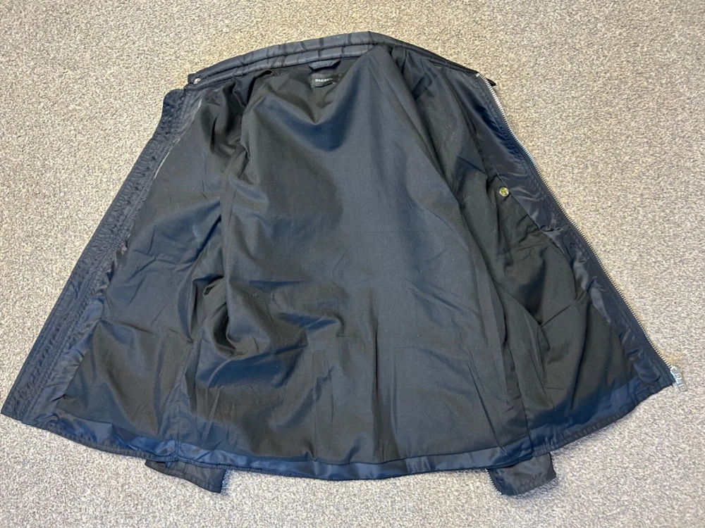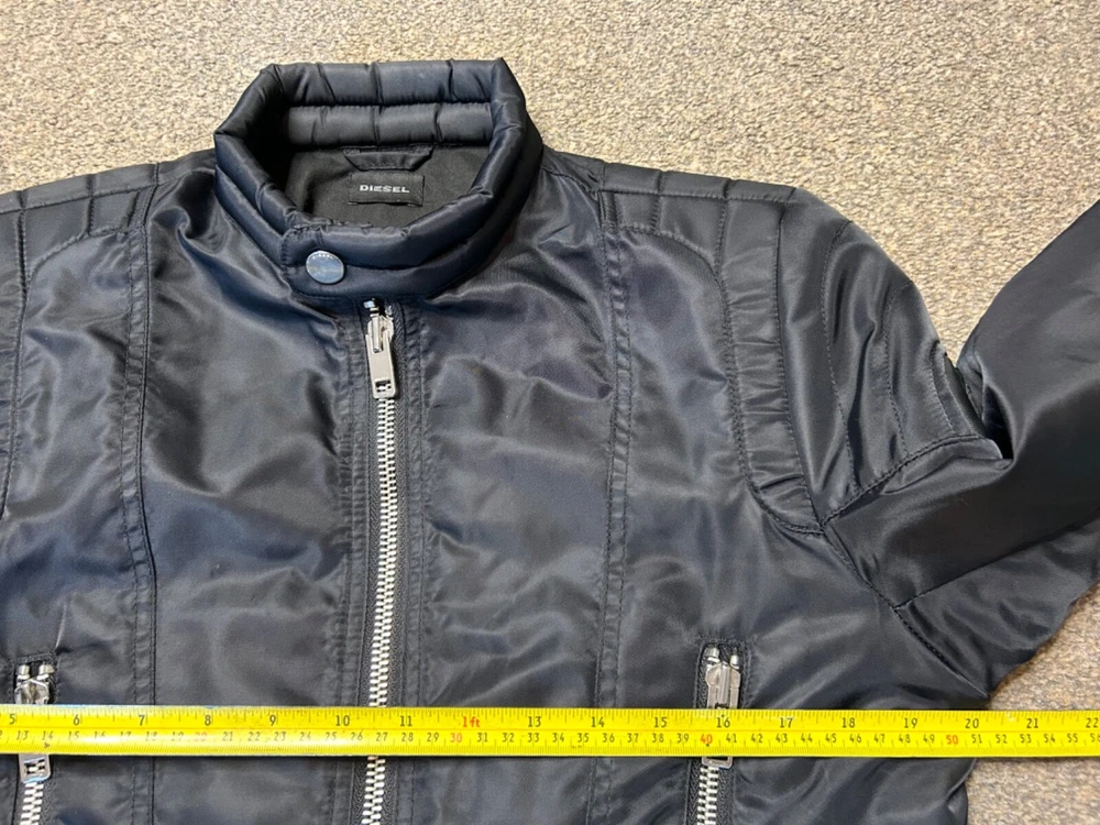 Chest Size: 38 in Features: Waterproof Seller Notes: “Excellent Condition” Lining Material: polycotton Size: M Jacket/Coat Length: Short Occasion: Casual, Party/Cocktail Outer Shell Material: Nylon Style: Biker Size Type: Regular Brand: Diesel Garment Care: Machine Washable Department: Men Collar Style: Band Season: Autumn, Spring, Summer, Winter Closure: Zip Type: Jacket Colour: Black Fit: Regular
