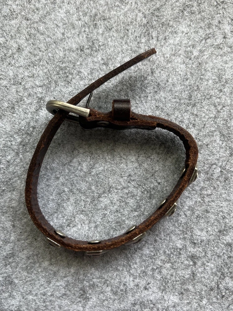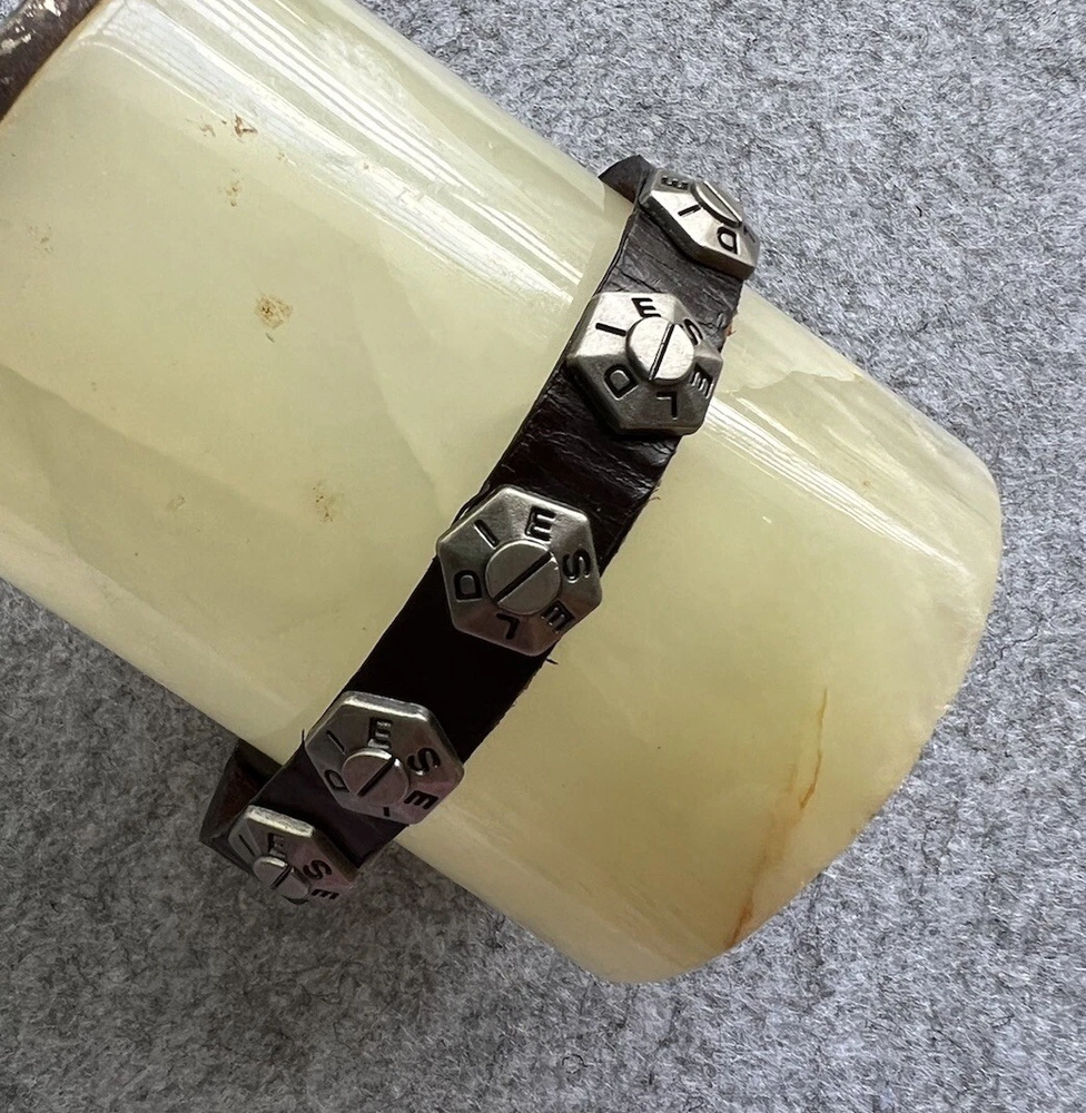 Mens DIESEL Brown Leather studded Bracelet. Measures 10.25 inches ..end to end. Adjustable with 5 holes. Excellent preowned condition. Smoke-free home. Fast shipping.