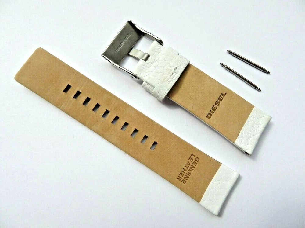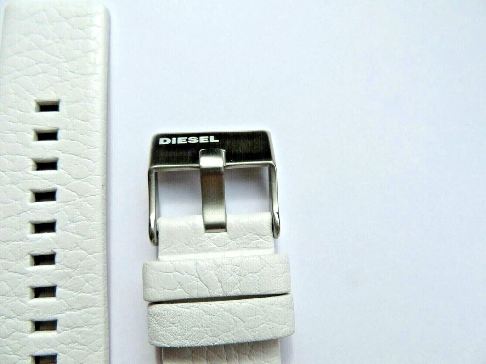 Watch strap original DIESEL Also fits other watches with 24 mm lug width. DIESEL: Model DZ4315 Material: Leather Color: White Mass 1-bridge width 24 mm 2-strap length closure side 80 mm 3-Band length hole side 120 mm Clasp: Stainless steel pin buckle silver Scope of delivery: Strap with two spring bars Watch strap original DIESEL Also fits other watches with 24 mm lug width. DIESEL: Model DZ4315 Material: Leather Color: White Mass 1-bridge width 24 mm 2-strap length closure side 80 mm 3-Band length hole side 120 mm Clasp: Stainless steel pin buckle silver Scope of delivery: Strap with two spring bars