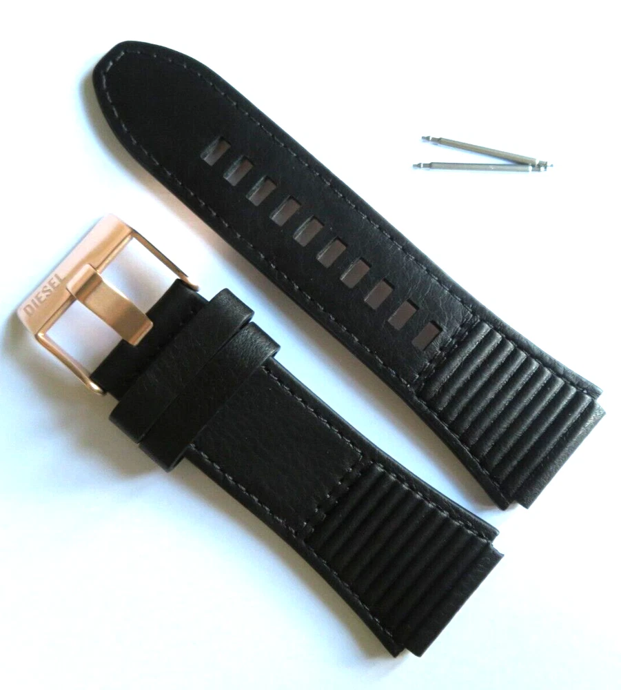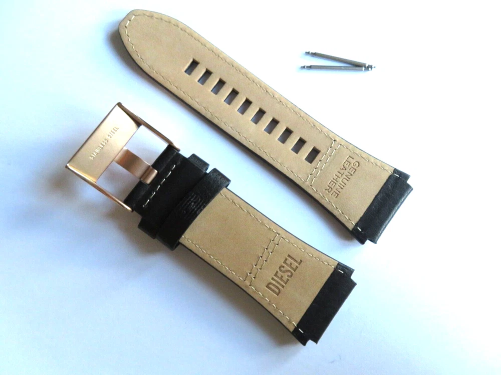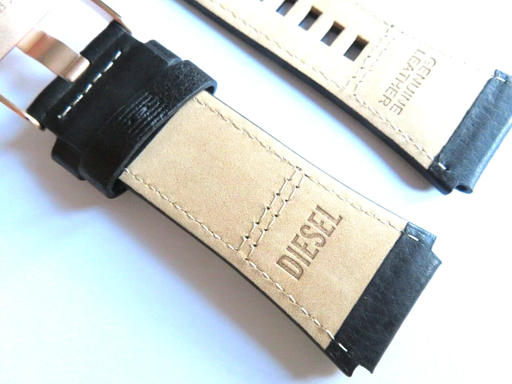Watch strap original DIESEL Also fits other watches with 24 mm lug width. DIESEL: Model DZ7475 Material: Leather Color: Black Bridge width: 24 mm Clasp: stainless steel pin buckle rose gold matt Scope of delivery: Band with two bars Mass: 1-bridge width: 24 mm 2-Band length closure side: 90 mm 3-Band length hole side: 115 mm Watch strap original DIESEL Also fits other watches with 24 mm lug width. DIESEL: Model DZ7475 Material: Leather Color: Black Bridge width: 24 mm Clasp: stainless steel pin buckle rose gold matt Scope of delivery: Band with two bars Mass: 1-bridge width: 24 mm 2-Band length closure side: 90 mm 3-Band length hole side: 115 mm