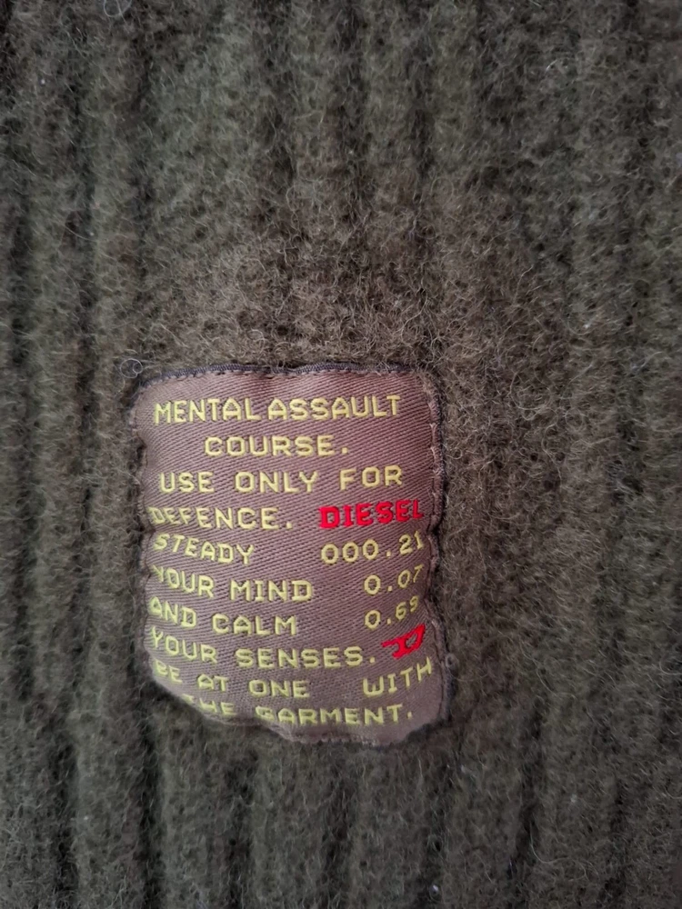 Item Highlights: DIESEL army olive green ribbed knit sweater Crew neck with classic raglan sleeves for a relaxed silhouette Distinctive Diesel patch detail: “Mental Assault Course” print for an edgy look Crafted from 100% pure wool for superior warmth and comfort Thick ribbed knit texture – ideal for cooler weather Size XS (fits a relaxed Small) Garment Care: Hand wash only, lay flat to dry. Do not bleach, wring, or tumble dry. Shipping Information: Please note: This item ships from Tirana, Albania. Domestic shipping is not applicable. Actual shipping times align with the international shipping options provided. Expedited shipping via UPS Worldwide Expedited is included. Your package will ship directly from Albania and arrive in 1–4 business days . Customs Notice: Any additional charges related to importation, such as customs duties, VAT, or other taxes, are not included in the price. These charges will be paid directly to the shipping carrier by the buyer upon delivery, if applicable. If the buyer does not clear the item from customs, they remain responsible for the cost of returning the item to the seller. Please ensure you are familiar with your country's import policies before purchase. Returns: Returns are accepted within 30 days if the item is unused and in its original condition. The buyer is responsible for return shipping. Thank you for being here! Don't forget to browse our other timeless pieces—you might find your next wardrobe favorite. 😊