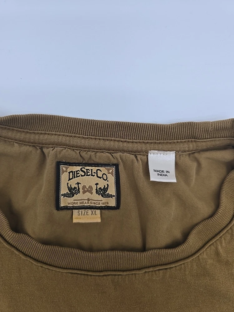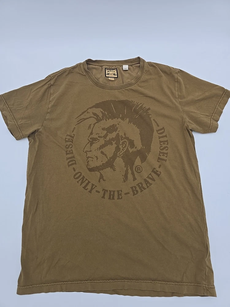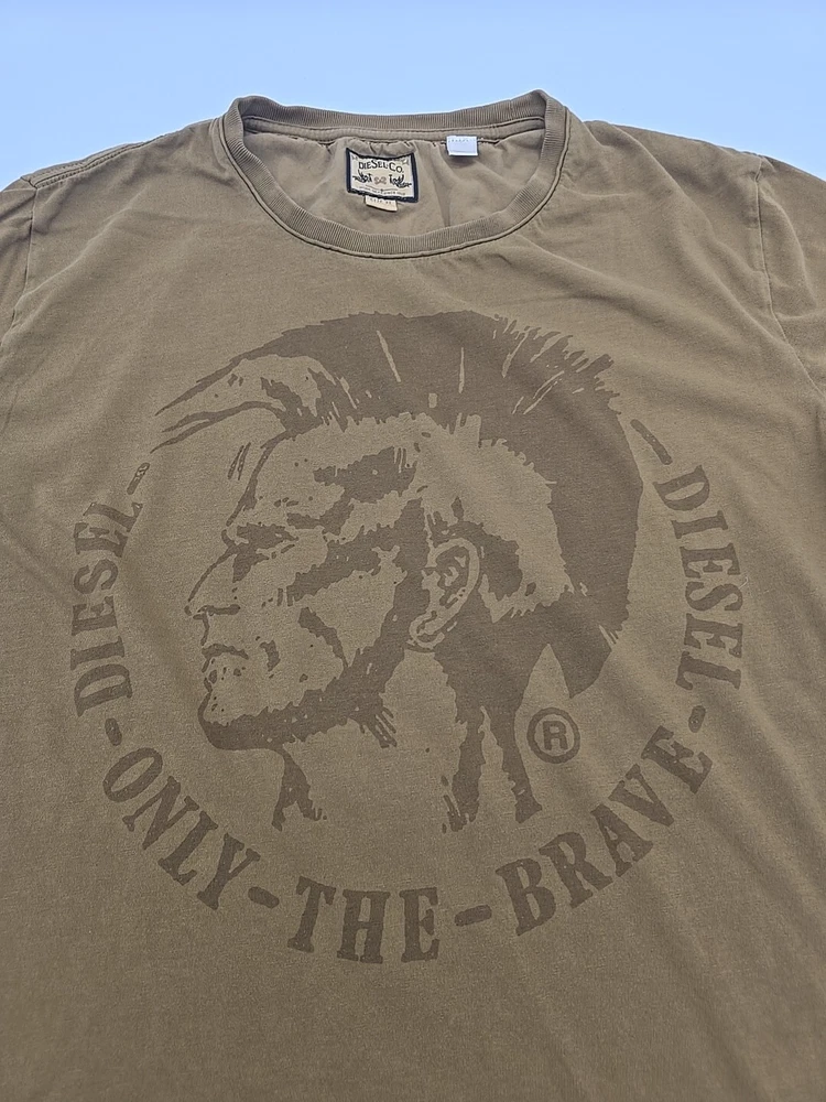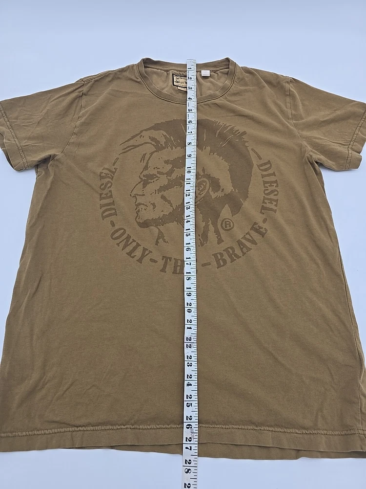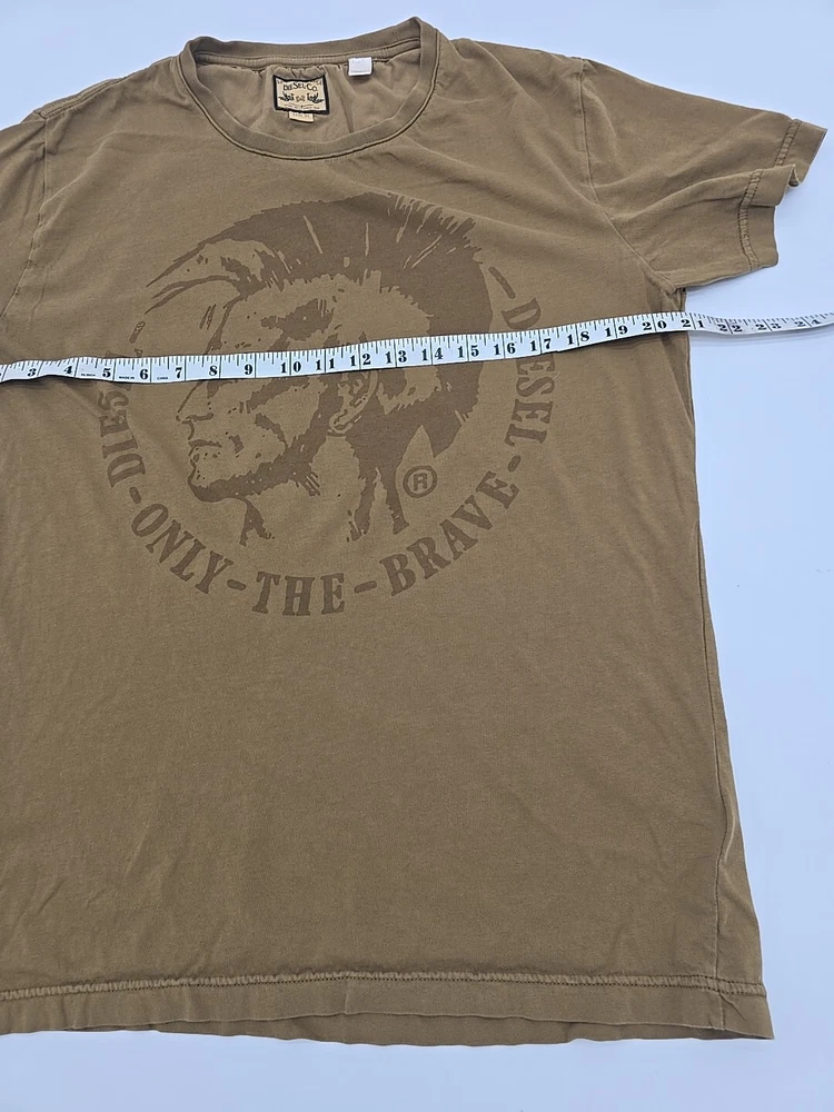 This vintage Diesel Y2K t-shirt is a must-have for any fashion-savvy man. Made in India, this shirt features a unique graphic print that showcases the brand's iconic logo. With a crew neckline and short sleeves, this shirt is perfect for any casual occasion. The shirt is made of high-quality cotton material and is machine washable for easy care. The brown color of this shirt makes it a versatile addition to any wardrobe. The shirt is available in XL size and has a regular fit. This t-shirt is perfect for men who want to show off their love for designer, Italian, USA, marine, university, holiday, music, London, outdoor, city, classic, and Paris themes. The shirt is suitable for all seasons and is padded with breathable material, making it comfortable to wear in winter, summer, fall, and spring. Check Pictures for flaws and measurements