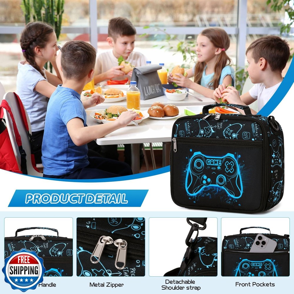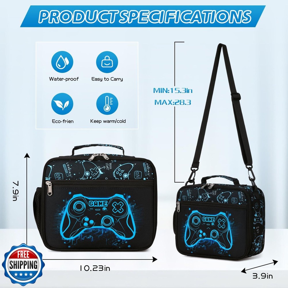 DIGOBAY Insulated Lunch Box for Kids Boys, Cool Luminous Gamer Kids Lunch Bag for Boys, Waterproof Leakproof Reusable Portable Lunchbox with Adjustable Shoulder Strap for School Travel Picnic Features 【Cool Luminous Game Lunch Bag】This kids insulated lunch bag features a futuristic, cool game elements design that glows in the dark after absorbing light. Boys lunch box is perfect for kids and teens who love video games. The vibrant graphic lines and tech-style design add to the eye-catching appeal, making lunch time more exciting whether at school, camp, or outings. 【Spacious and Practical】This kids lunch box measures 10.2" × 4" × 7.9", with plenty of space to easily store lunch boxes, snacks, drinks, cutlery, etc. The boys lunch bag for school features a convenient zippered front pocket for storing cutlery, napkins, or small items, keeping everything organized and easily accessible. 【Portable lunch bag】The kids lunchbox is equipped with a detachable and adjustable crossbody strap, can be worn crossbody for hands-free convenience or carried by the top handle. Perfect for school days, travel, or weekend activities, it provides kids with flexible and comfortable carrying options. 【Insulated and Durable Material lunchbox】The gamer lunch bag for kids boys is made of high-quality waterproof Oxford fabric that withstands daily wear and light rain. The interior features thick, food-grade aluminum foil, waterproof, leak-proof, and easy to clean. It helps maintain the ideal temperature of food and drinks, keeping them fresh for longer. 【Perfect Gift for Boys】A great gift idea for back to school, birthdays, or holidays! With its cool tech-gaming style and glow-in-the-dark elements, the insulated lunch box for kids is sure to delight kids ages 3+ who love everything gaming. Surprise your gamer kid with a fun, functional lunch companion! Shipping Free & Fast Shipping: We offer free shipping to most of the USA with a normal delivery time of 3-7 days. However, due to the current situation, additional delivery time (up to 3 weeks) may be required for some items. Alternative Carriers: We may use alternative carriers (e.g., USPS, FedEx, UPS) to ensure your package arrives safely and on time. Due to the use of multiple carriers, we are unable to provide a tracking number automatically. Handling Time: Orders are processed and shipped within 1-2 business days of receiving cleared payment. Shipping Restrictions: Shipping to Alaska, Hawaii, Puerto Rico, Guam, and other US territories may incur shipping charges or delivery restrictions. Please contact us before ordering, or your order can be refunded/cancelled. State Restrictions: Certain items may not be shipped to California due to state regulations. Contact for Tracking Updates: If you require tracking updates or have any concerns about the delivery of your order, please feel free to contact us, and we will be happy to assist you. Return Policy 30-Day Hassle-Free Returns: If you are not completely satisfied with your purchase, you can return the item for free within 30 days of receiving it for a full refund or exchange. Easy Return Process: Contact us, and we will provide you with a prepaid return shipping label and detailed instructions. No Restocking Fee: There are no restocking fees for returns. However, the buyer is responsible for return shipping costs if the return is not due to a seller"s error. Refund Processing: Refunds will be processed within 1 business day of receiving the returned item in its original condition. Feedback Your feedback is extremely important to us. We strive to provide the best products and customer service possible. If you are satisfied with your purchase, please take a moment to leave us a positive review. If you have any concerns or issues with your order, please contact us before leaving negative feedback. We are committed to resolving any problems and ensuring your satisfaction. Contact Us If you have any questions or concerns, please feel free to reach out to our customer support team. You can contact us through the eBay messaging system. We are available Monday to Friday, 9:00 am to 5:00 pm EST, and we will do our best to respond to your inquiry within 24 hours. Thank you for supporting our small family business!