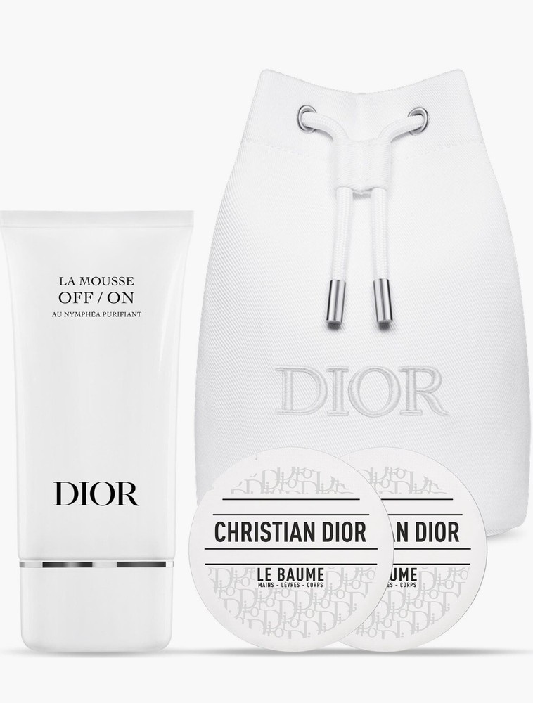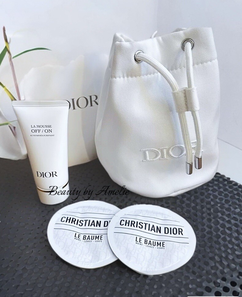 DIOR White Drawstring Cosmetic Pouch – Mousse 1.7oz + Le Baume Skincare Samples **I combine shipping**