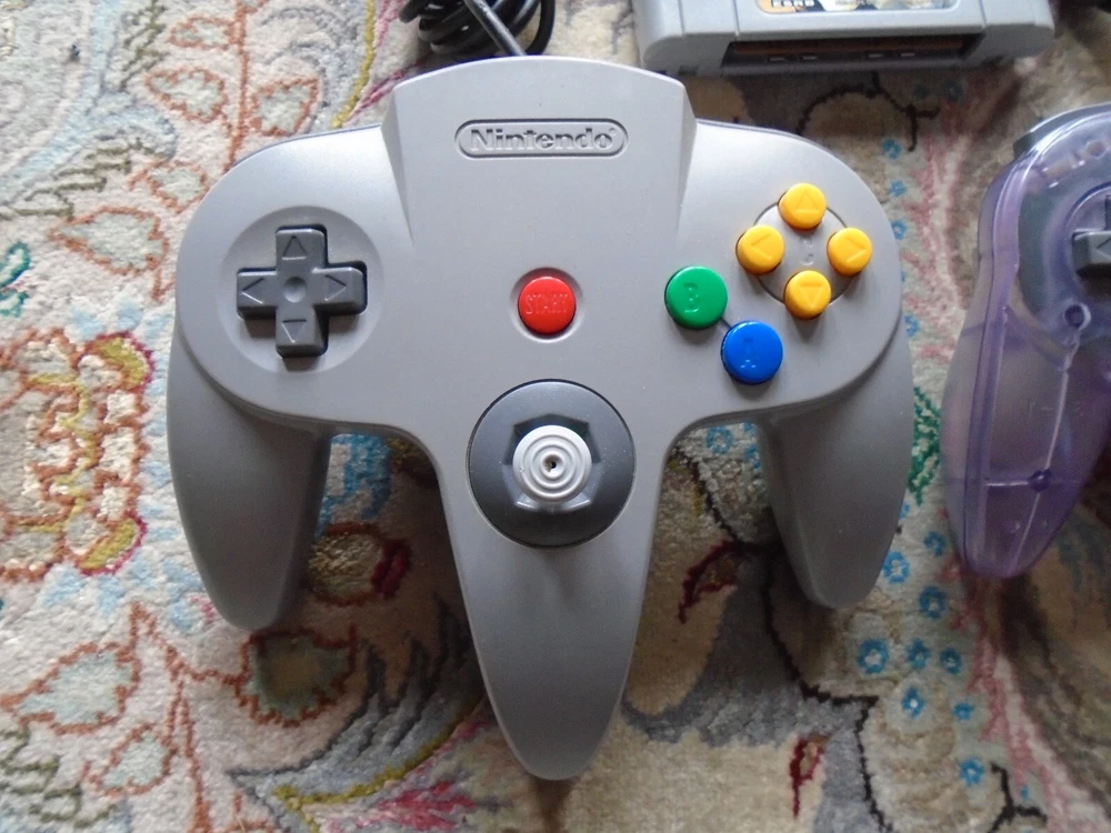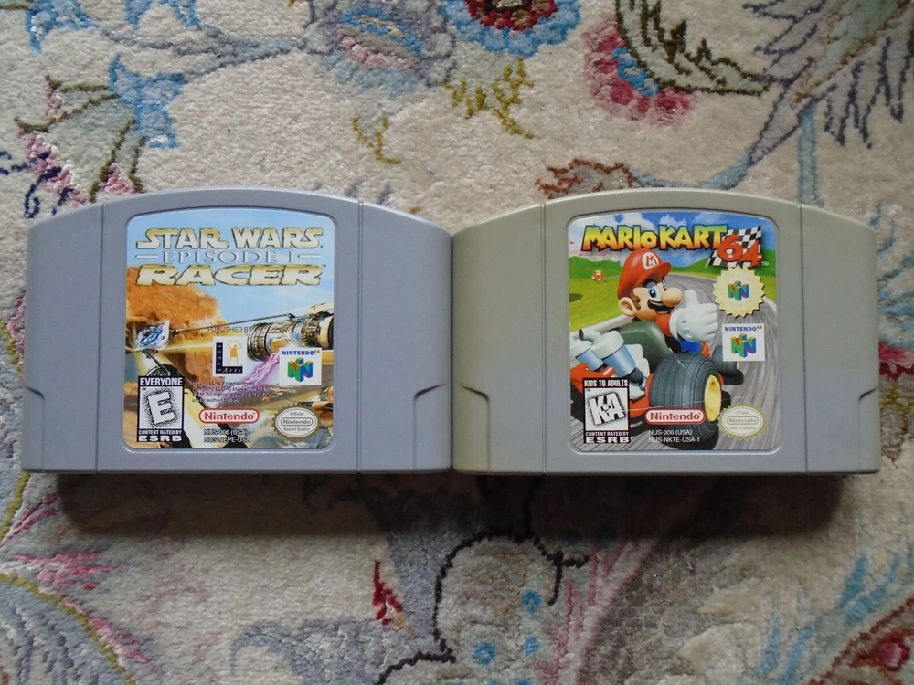 Video game bundle includes: Nintendo 64 Console NUS-001 2 Nintendo brand controllers (joysticks work great - read below) 2 Third-party brand controllers (joystick also works great!) Necessary OEM cables (Nintendo brand power cable and composite audio/video cables) 2 authentic, original games included: Mario Kart 64 Star Wars Episode I: Racer Functionality and Cosmetic Condition: Everything is fully tested and it all works perfectly! The joysticks work great, with a little bit of give on the Nintendo ones. The items are in fair to good to excellent used condition, with some signs of wear on Mario Kart and some nicks on the orange controller. The items come from a smoke-free, pet-free home. The photos are of the actual items being sold. We only accept returns if the items were not described correctly. Thank you for viewing our auction and good luck bidding!
