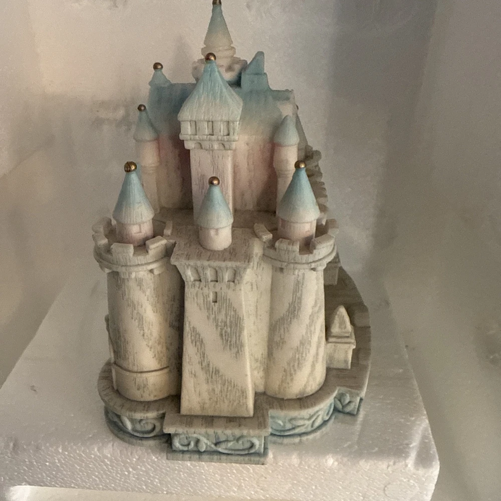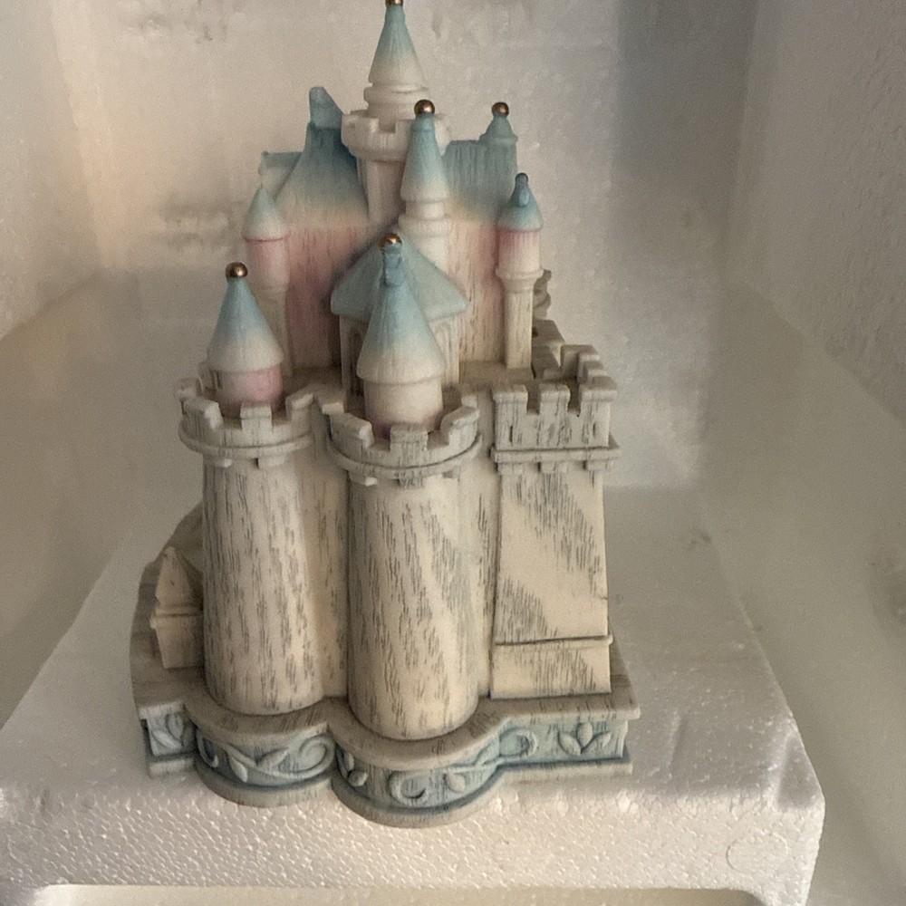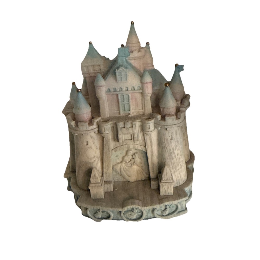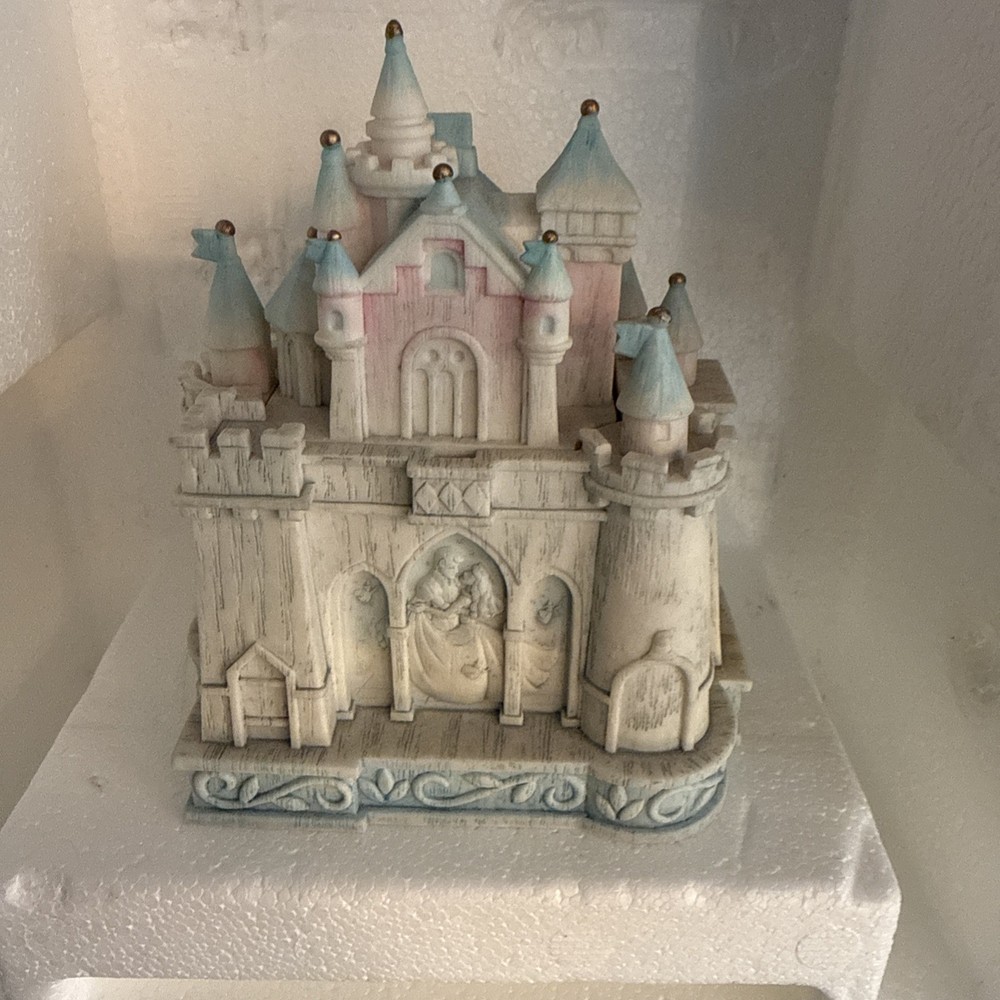 The Disney Olszewski Sleeping Beauty Castle Figurine Trinket Box is a collectible item featuring a beautifully designed Sleeping Beauty castle figurine from Disney. This trinket box is a perfect souvenir for fans of the Disney Sleeping Beauty franchise, adding a touch of magic and enchantment to any collection. Made by Disney, this figurine trinket box is sure to bring joy to any Disney enthusiast's collection.