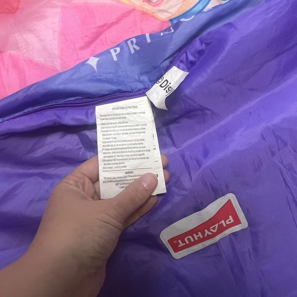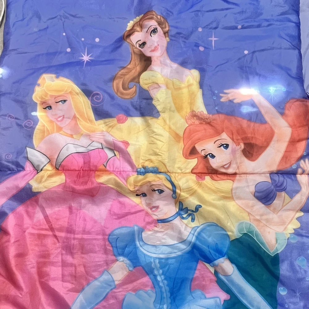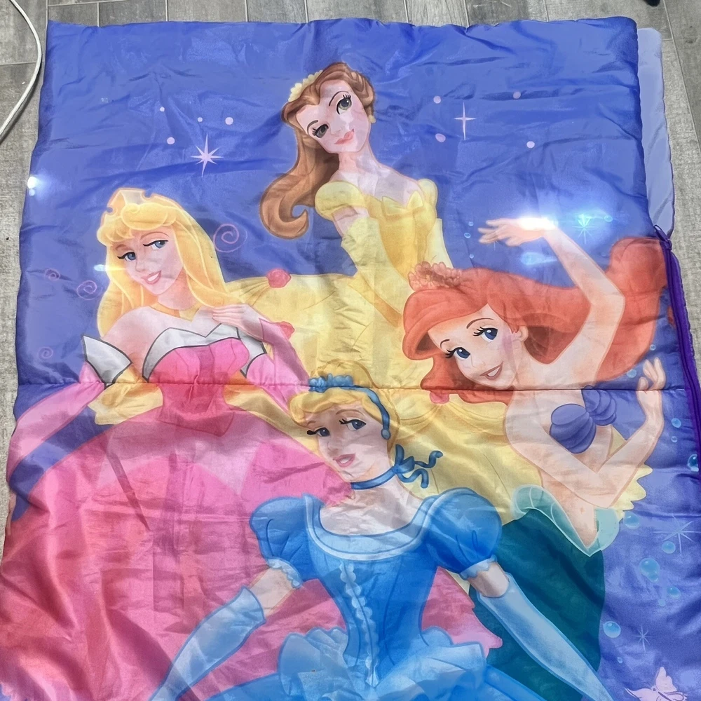 Description Disney girls zippered sleeping bag Disney Princesses - Belle, Cinderella, Ariel, Aurora ballerinas Purple Made by Playhut Disney licensed product Condition Like new, barely used In excellent used condition