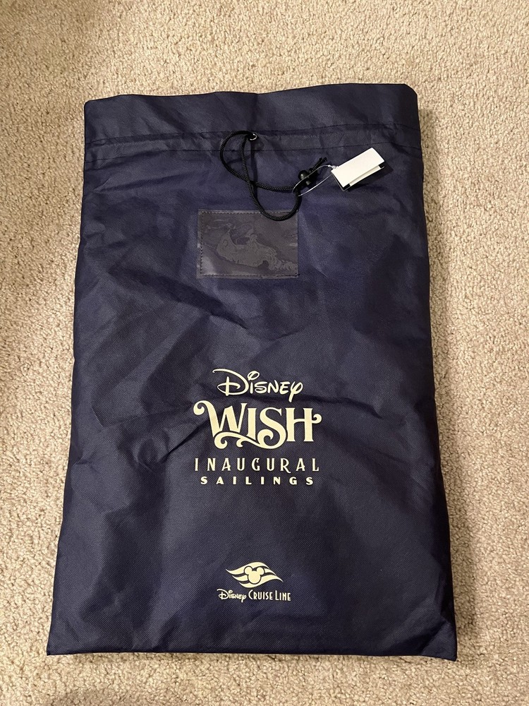 The Disney Wish Inaugural Sailing Castaway Club Tote Laundry Bag & Passport is a special item from the Disney Cruise Line. This tote bag features the Disney Wish theme, perfect for fans of the Disney franchise. With a contemporary design, this unique item is ideal for collectors and Disney enthusiasts looking to commemorate the inaugural sailing of the Disney Wish cruise ship.