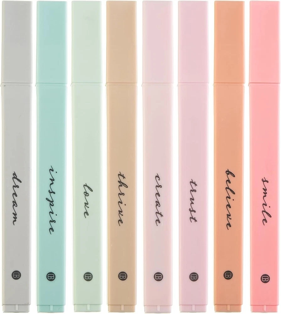 DIVERSEBEE Bible Highlighters with Soft Chisel Tip, 8 Pack Assorted Boho Product Details Manufacturer: DiverseBee Brand: DIVERSEBEE Item Weight: 3.52 ounces Product Dimensions: 6.69 x 4.53 x 0.71 inches Color: Boho Number of Items: 8 Point Type: Chisel Ink Color: Multicolor Manufacturer Part Number: DB073 Brand: DIVERSEBEE Ink Color: Multicolor Number of Items: 8 Point Type: Chisel Recommended Uses For Product: Color Coding Quick Dry and No Bleed: The Bible Safe Highlighters glide easily on thin Bible pages or any paper. 8 Aesthetic Boho Colors: Cute highlighters that are perfect for color coding and to highlight favorite book passages or notes. Won't Fade or Smear Over Other Inks: The rectangular shape highlighters are easy to hold and don't roll around while being used. Multipurpose Use: Bible Study Supplies, Office or School Supplies, Planner Supplies these soft chisel markers have a wide application.