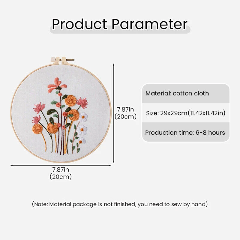 Best Choice for Beginners: This simple embroidery kit has embossed patterns on the embroidery cloth, making it easy for beginners to learn how to use needle and thread. This cross stitch kit comes with instructions to help those new to needlepoint feel more comfortable and confident with their creations. Bright Pattern Design: The patterns on the embroidery are well laid out and easy to follow, different styles of floral patterns and bright and realistic colors, this handmade embroidery is a suitable choice for anyone who pays attention to modern design. Handmade Gift: Handmade DIY embroidery kits make great holiday gifts for older kids, teens, adults, and for anyone who loves creating beautiful things or enjoys crafting, the floral embroidery kit will be a great addition The gift of meaning. Relax Yourself: Embroidery is a great hobby. You can release anxiety during the embroidery process. It takes time and patience to complete a set of cross-stitch, but you will have a strong sense of accomplishment and confidence after completion. Notice: 1. This is DIY product. 2. The embroidery shed need purchase separately. 3. Due to the light and screen difference, the item's color may be slightly different from the pictures. 4. Please allow 0.5-2 cm differences due to manual measurement. 5. Thank you for your kindly understandin. Include: 1. Embroidered cloth,size 29*29CM(11.4*11.4inch) 2. embroidered thread 3. embroidered needles