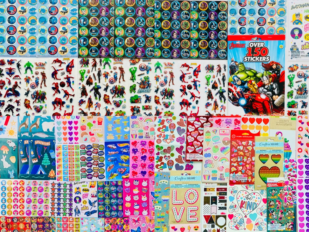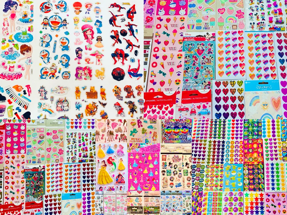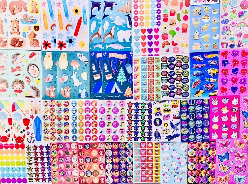 SUPER Bulk 1079+ Pc. Randomly Selected Super Stickers Assortment 27+ Sticker Sheets! Wow! Stickers galore! High Quality! Perfect for carnivals, school classrooms and other fun events, this colorful collection will brighten up notebooks, scrapbooks and papers! Giant assortments … great values! This bundle is filled with fun favorites, and a variety of designs and sizes to fit any occasion. Keep on hand to fill goody bags, give for rewards, or just because! The Super Assortment Pack is bursting with a fun variety of over 1,000 assorted stickers from our most popular categories: MEGA ASSORTMENT! Cars & Trucks + Cute Monster + Animals + Fiesta Fun Foods + Magical Reward + Dinosaur + Tropical Bird + Western Animals Sparkle Stickers, Puffy Stickers, SuperSpots Stickers, Applause STICKERS, superShapes Stickers, and so much more. Please Note: You will not receive everything pictured. Please contact me with any special requests.