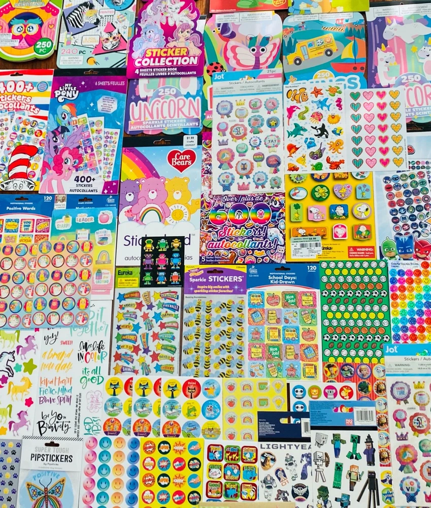 Happy Mixed Sticker Lot | The Ultimate Kit | Qty. 2889+ Stickers | High Quality Only! Fun Assortment of Puffy, Scrapbook, Cartoons, Bubble, Pop Up Stickers Packs For Everyone! You will receive 129+ Sticker Sheets of beautiful colorful assortment. The Pack will include 2889+ Stickers overall! I have included a large variety of pictures of the assortment available. The pictures give you an idea of what you will be receiving. Please Note: You will not receive everything pictured. Please contact me with any special requests. This HUGE Variety of fun designs stickers can be used in parties, classroom, school and home, good for reward for students, potty training, adding inside a birthday card, game activities, entertaining toddlers, etc. Perfect Gifts for Kids & all Occasions: Can be given as a gift for kids, girls, boys, toddlers, teens, students, friends, and classmates, they will love it!