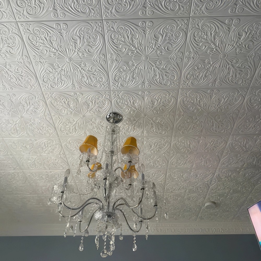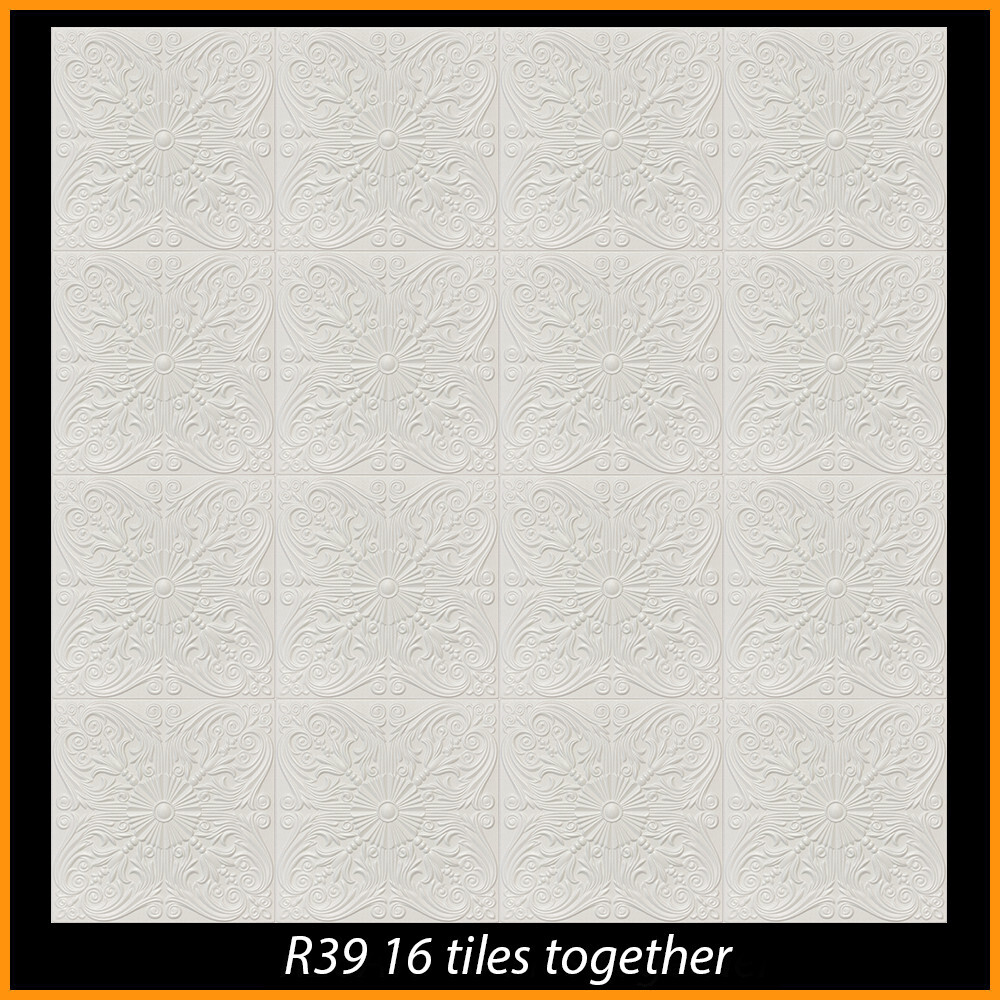 WHY PAY MORE TO BRING YOUR PLAIN DULL CEILING OUT OF THE DARK AGES? Try our wonderful and inexpensive ceiling tiles! The ROYAL collection is the most popular type of decorative ceiling tiles, made out of Extruded Polystyrene (a kind of Styrofoam), ideal if you want to change your decor substantially without straining your budget. Available in a wide range of designs, the ROYAL tiles will satisfy even the most choosy customer. As you can always renew them with emulsion, acrylic or other water-based paints, they can beautify your interiors for many years. Appr. dimensions : 19.5"x19.5"x0.21" Appr. area per tile : 2.64 sq. ft. Color : Factory Plain White Pack of 96 tiles to cover 253.44 sq.ft. How many 20x20 tiles would you need? Measure your area in square feet and divide the number by 2.64 This is exactly how many tiles you need. We always recommend to add 10% for waste to that number. As example. You have 200 sq ft area. 200 / 2.64 = 76. You need 76 tiles. Add 10% for waste and the final number is 84 tiles. If you have any questions, please send us a message Installation Instructions Please click here to download the installation instructions for our 20"x20" styrofoam ceiling tiles (PDF format). About Us Euro-Deco Ceilings Inc. is specialized in interior decoration. Through this web page, you will be able to appreciate a wide selection of innovative products that can be used in your embellishment. We are an official distributor for the unique European ceiling tile technology on the American market, unique design, polystyrene-based creative ceiling tiles, crown moldings, borders and rosettes. In addition, we sell a great variety of bathroom vanities. Our inventory includes a wide assortment of ceiling tiles, borders and moldings to fit any lifestyle. We have a huge selection of designs and colors to satisfy the needs of the most scrupulous designer. Our fascinating materials will make your household more joyful, colorful and cozy! Dealers are welcome, contact us to the telephone number mentioned above. Payment and Shipping Information We accept PayPal only as payment solution. Payment must be received within 7 days of the auction's closing date. We use FedEx Home Delivery service for most of domestic orders. Delivery usually takes 3-6 business days. Please also allow up to 3 business days to process your order. Return Policy Hand-painted items are non-returnable! Consider ordering samples before you place full order! If you are not satisfied with the items that you have purchased, you can return them back to us. The Shipping and Handling, eBay charges, and a 15% restocking fee will be deducted from the full refund. You have thirty (30) days from the date of receipt of the product to return it. After 30 days no returns will be accepted. The Customer is responsible for paying for shipping and handling and arranging for pickup of the return. In case of free shipping, actual cost of shipping will be deducted from final refund, because it does cost us money to ship items, even if it was sold with "free shipping". To get refund, the first thing is to contact us as soon as possible. In case the reason of the return is because of damage to the order by the freight company, we will need pictures as well. Regardless of the reason, you must return all of the purchased items in their original package, unused and in the same condition as they were received. All claims and returned goods must be accompanied by the invoice. Refund process would take around 5 business days to have money received on your account. All returns must be sent to: Euro-Deco Ceilings, Inc. 1210 Stirling Rd. Suite 9B Dania Beach, FL 33004