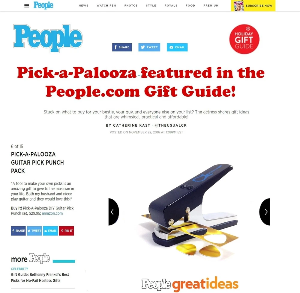 Included in your package: 1 Pick-a-Palooza guitar pick maker with gift box Pick-a-Palooza guitar pick maker is a useful and unique gift for any guitar player. Guaranteed to be the hit of any gift giving situation, Birthdays, Christmas, Father's Day, Graduation or just buy one for yourself! Heavy duty, sturdy construction and a stainless steel blade allows the user to create uniform and smooth guitar picks every time. Simple to use, create custom guitar picks from old credit cards, gift cards, hotel room key cards, driver's licenses or any thin piece of plastic laying around the house. We play the guitar too! – Designed by guitar players for guitar players! Never be pickless again. The Pick-a-Palooza. As much fun to say as it is to use. Enjoy!