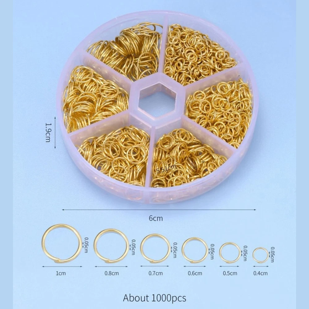 Jump Rings with Case Stainless Steel DIY Jewelry Making Jump Rings 1000 Pieces Product description: Elevate your jewelry making projects with these Stainless Steel Jump Rings Set. Designed for crafters and hobbyists, these golden-colored jump rings come in various sizes, all neatly organized in a compact case. Whether you're designing intricate necklaces, bracelets, earrings, or keychains, these sturdy and elegant jump rings will add a touch of sophistication to your creations. Key Features: Durable Stainless Steel with Gold Finish: Crafted from high-quality stainless steel, these jump rings offer strength, rust resistance, and durability while maintaining a beautiful golden finish for a luxurious look. Multiple Sizes: Ranging from 4mm to 10mm, the set includes a variety of sizes (1cm, 0.8cm, 0.7cm, 0.6cm, 0.5cm, and 0.4cm) to suit different crafting needs. Compact Storage Case: Organized in a round case with divided compartments, making it easy to store and find the right size ring for your project. Ideal for DIY Crafting: These versatile jump rings are perfect for assembling charms, attaching pendants, connecting chain links, and repairing jewelry. Smooth and Easy to Use: The rings feature a smooth surface, ensuring that they won’t damage delicate materials, making them ideal for professional-quality designs. Enhance your crafting experience with this comprehensive Stainless Steel Jump Rings Set and create beautiful, lasting jewelry pieces that shine with elegance. Perfect for beginners and professional jewelry makers alike! Contact us: We can be contacted at any time through eBay messages if you have any questions, comments, or product requests. We will respond to you within 24 hours and do our best to help you out! We encourage our customers to contact us with any questions or concerns! We'd like to be sure you are completely satisfied with your purchase. Shipping Policy: Free Shipping to all buyers Shipping Time: 2 – 8 Business Days Handling Time : 3 Business Days International Shipping: No international shipping Tracking Details: A tracking number will be provided once available from our shipping partner. Please contact us if you don't receive your item in 10-12 business days, we will check the status and try our best to resolve any problems for you. Return Policy: Domestic Returns Options: Returns Accepted After receiving the item, your buyer should contact you within 30 Days Return shipping will be paid by: Buyer Refunds will be given as Money Back or Replacement International Returns Options: Returns Not Accepted. HAPPY SHOPPING!!