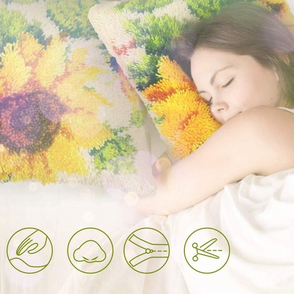 Hook Kits for Adults and Kids: This Pillow Cover size is 16.5*16.5 inches Kit Includes: high-quality printed canvas, one latch hook craft tool, pre-cut yarn pieces, detailed instructions and color printing, suitable for children and beginners.This kit contains a 50% polyester/50% cotton canvas Easy to Star:The color-coded canvas makes a easy start and ensures that you put it down and pick it up again .The possibilities are astounding Family Activity: Latch hook kits is a simple and easy to learn handicraft kit, you can invite anyone to do handicrafts together, suitable for children over 8 years old or adults. Enjoy the process of handcrafting together, find inner peace, relax body and mind, and improve hands-on skills Home decoration: The furry pillowcase is suitable for placing anywhere in the home, decorating sofas and seats, adding a unique color to your home
