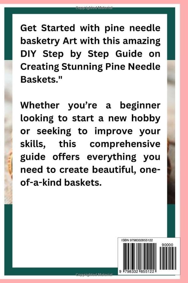 Number of Pages:178Book Title:PINE NEEDLE BASKETRY: A Complete DIY Step by StepFormat:paperbackLanguage:EnglishPublisher:Contact SellerAuthor:Dicke, Joy