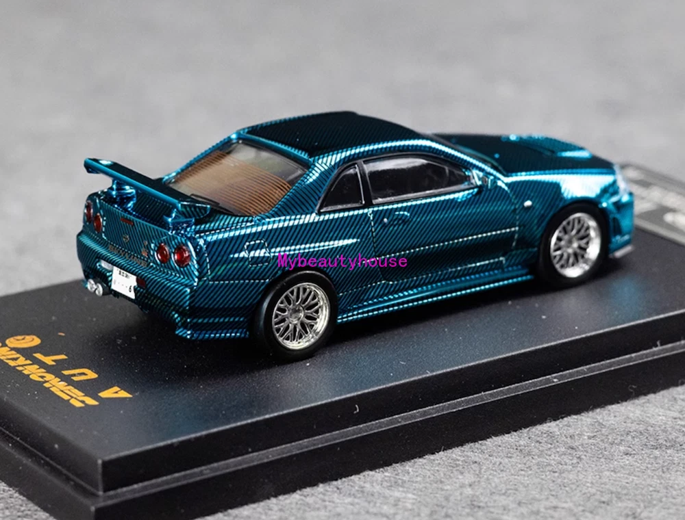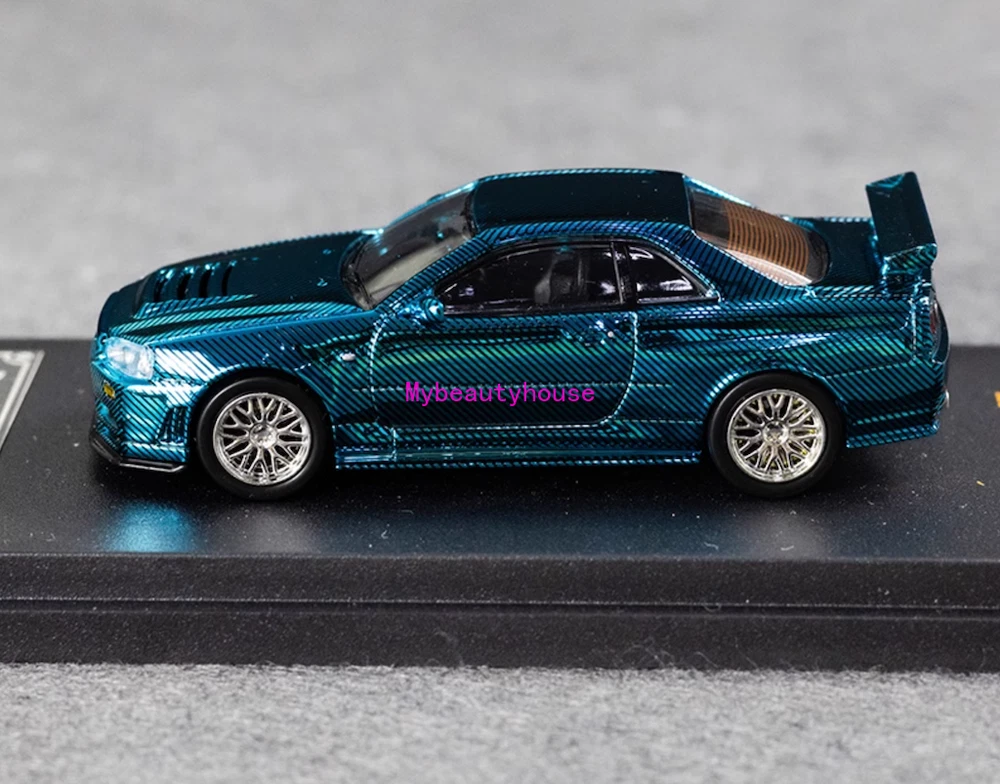 DK 1:64 Blue Carbon Skyline GTR R34 Racing Sport Model Diecast Metal Car