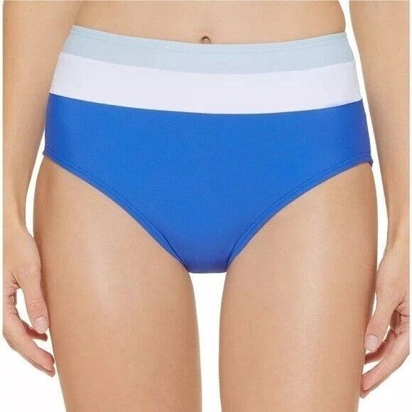 A high-waisted design lends a flattering fit to DKNY's colorblocked bikini bottoms. Sits at hips Moderate bottom coverage High banded waist Lined Shell 1: nylon/spandex; shell 2 & lining: polyester/spandex Hand wash Imported Web ID: 13158994 Listing and template services provided by inkFrog