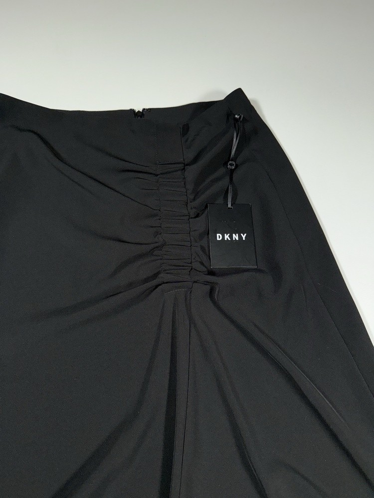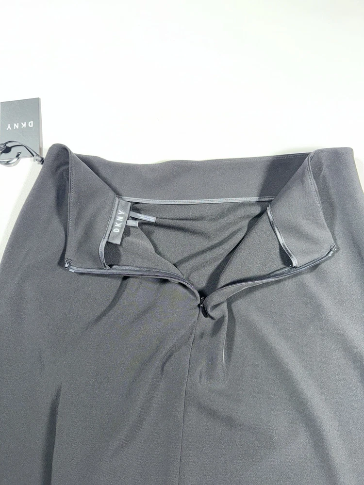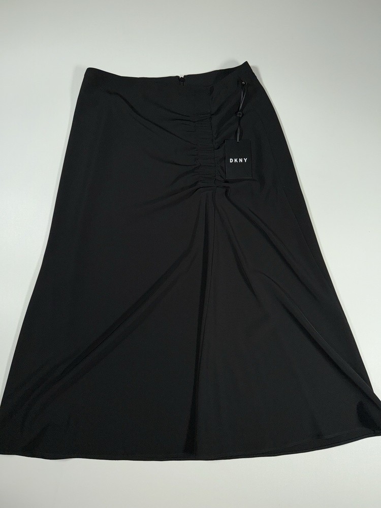 The DKNY Women's Pull on Pleated Everyday Midi Skirt in Casual Black is a versatile addition to any woman's wardrobe. This A-line skirt features a comfortable pull-on closure and is made from a blend of polyester and spandex, making it perfect for everyday wear. The midi length and pleated design add a touch of style, while the classic black color makes it easy to pair with any top for a casual yet chic look. Ideal for summer, fall, or spring, this skirt is a must-have for any fashion-forward woman in size 2.