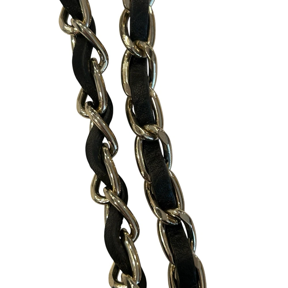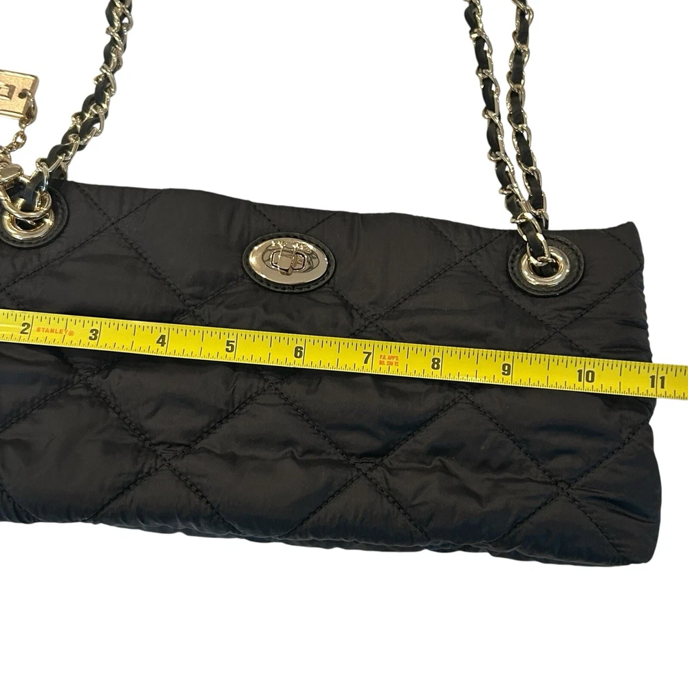 DKNYC Quilted Black Clutch Purse Gold Metal Chain Straps Evening Bag. Good pre-owned condition with normal wear, no tears or stains, see photos for details. Measurements in photos and are approximate. (111)