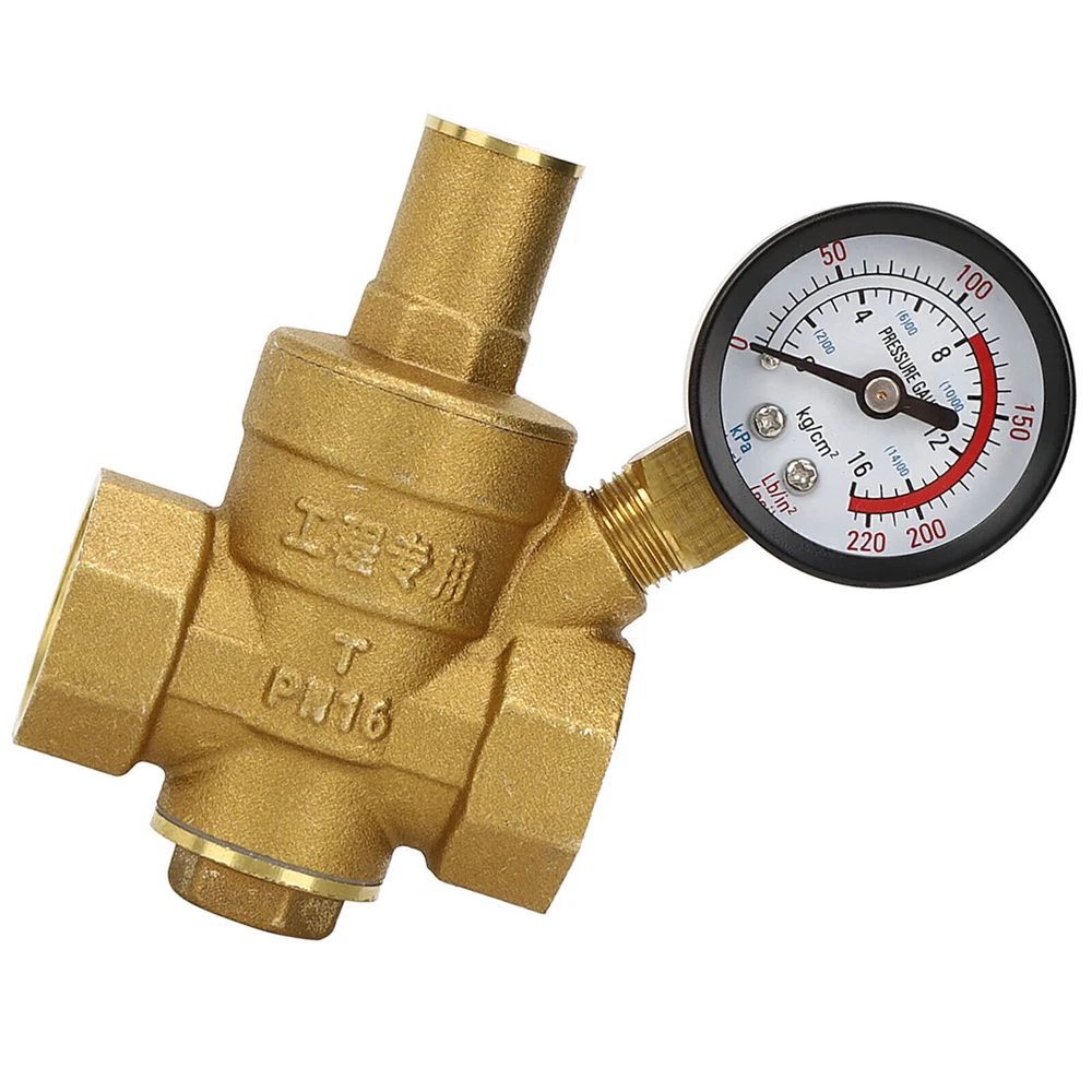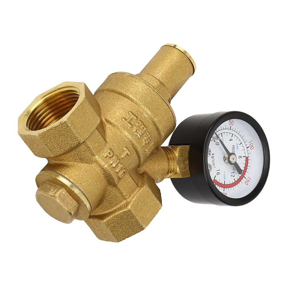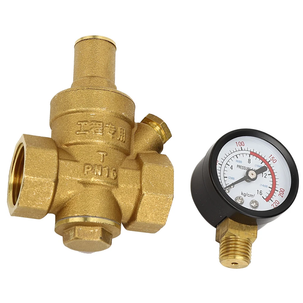 DN20 Brass Adjustable Water Pressure Regulator Reducer with Gauge Meter