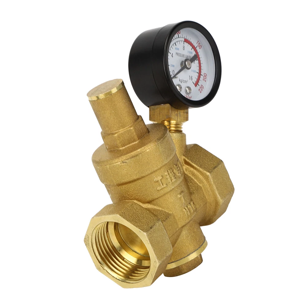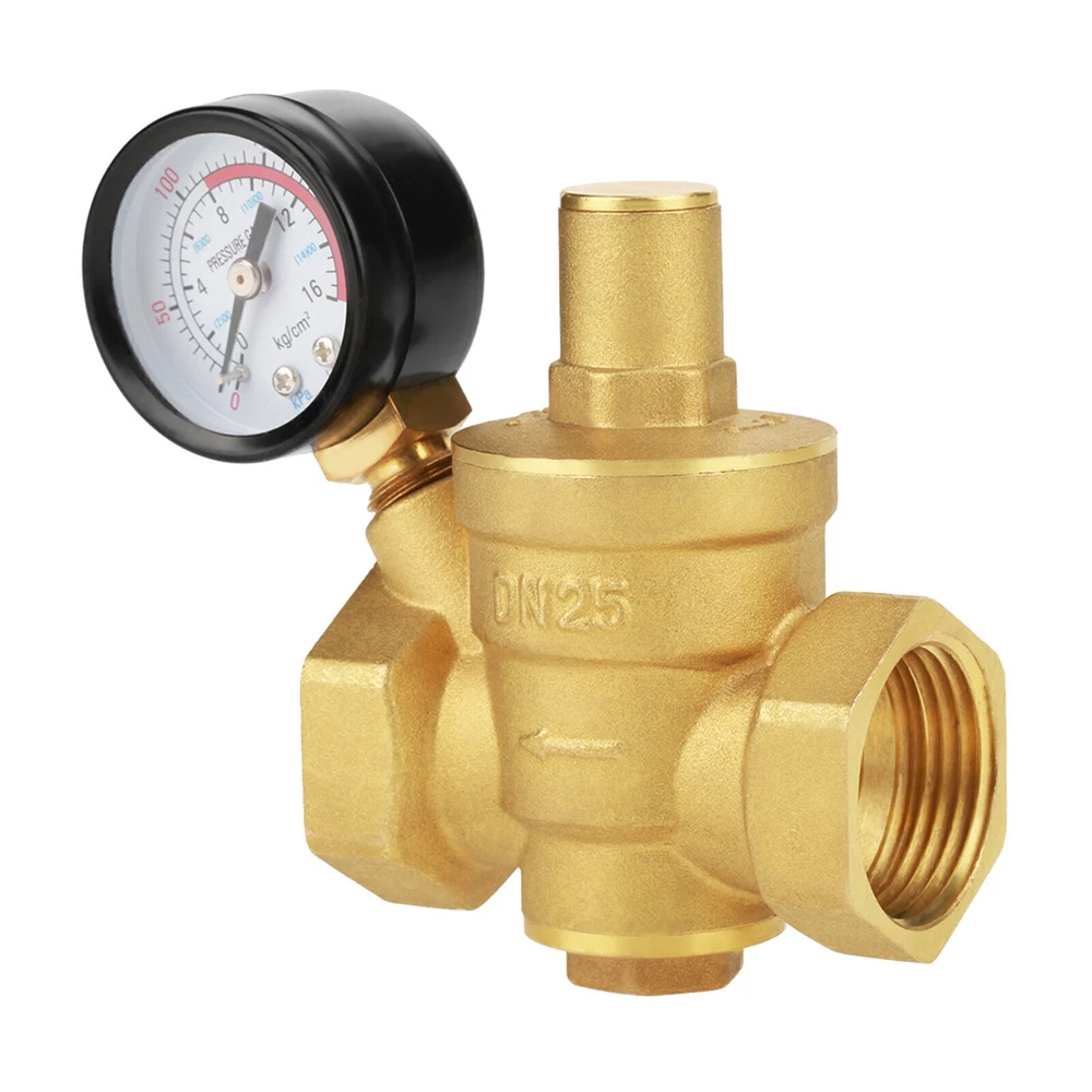 DN25 Brass Adjustable Water Pressure Reducing Regulator Reducer Gauge Meter