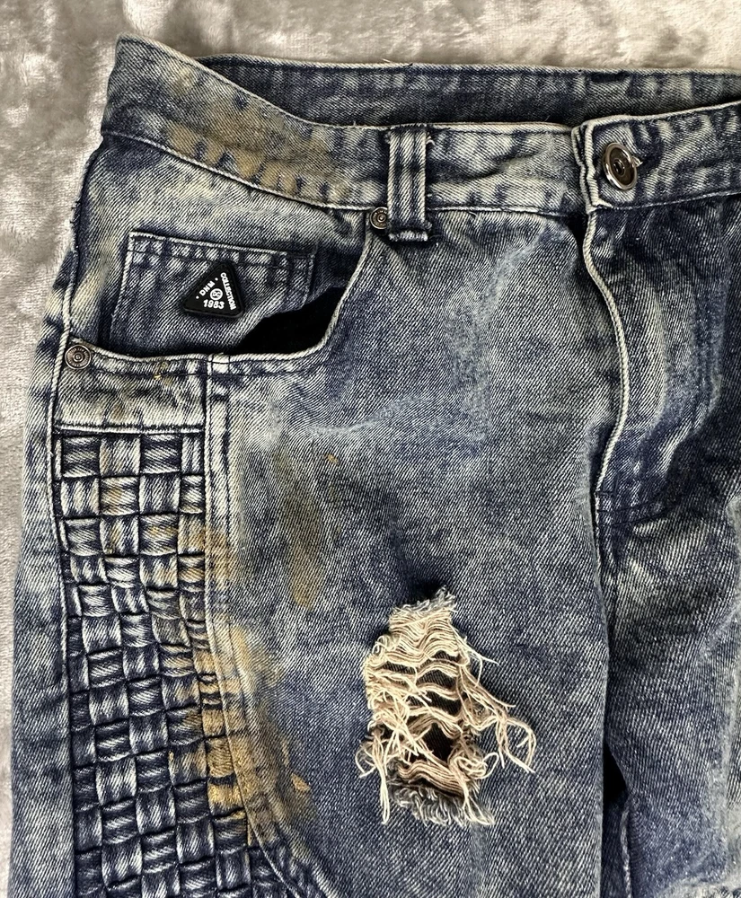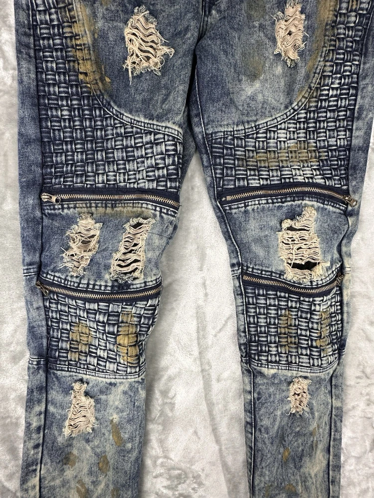 DNM Collection Original Men's Moto Denim Jeans Sz 34 Wash Distress Grunge Skate