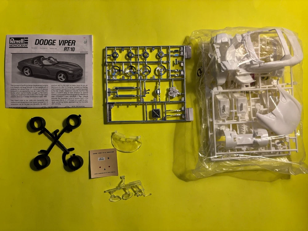 HERES A GREAT MODEL KIT FROM REVELL MONOGRAM MODELS !! ITS A DODGE VIPER RT/10 COUPE IN 1/25 SCALE !! KIT HAS BEEN OPEN AND IT LOOKS TO BE COMPLETE !!.KIT IS GOING AS=IS !! CHECK THE PICTURES WHAT YOU SEE IS WHAT YOULL GET !! .BUYER PAYS 13.50 FOR USPS SHIPPING IN THE USA ONLY!!TRANSACTION MUST BE COMPLETE AT AUCTION END.I ACCEPT PAYMENTS THROUGH PAYPAL ONLY!! THANKS FOR LOOKING!! I DO COMBINE SHIPPING SO PLEASE CHECK MY OTHER ITEMS!! IF YOU DONT LIKE MY PRICES MAKE ME AN OFFER!! THE WORST I CAN DO IS SAY NO