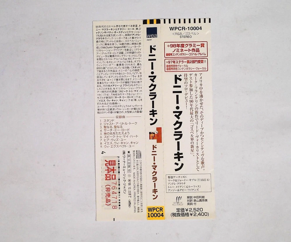 DONNIE MCCLURKIN WPCR-10004 JAPAN CD OBI