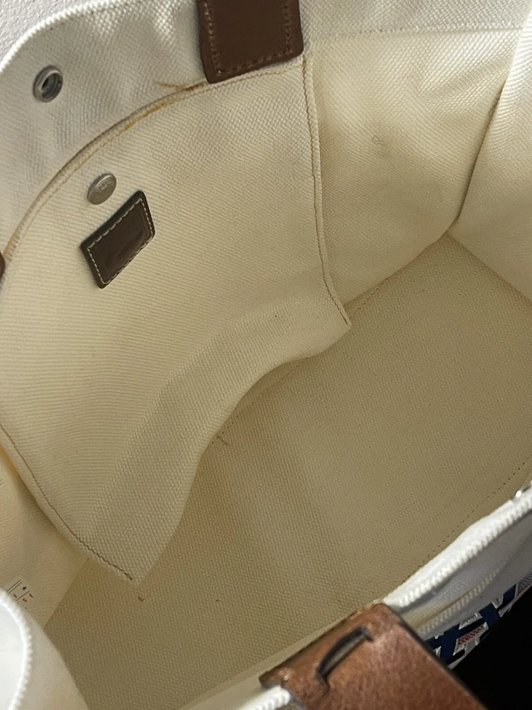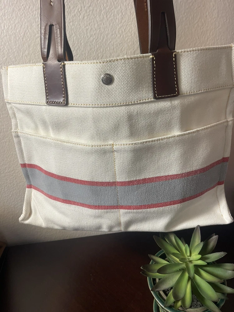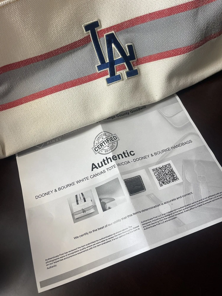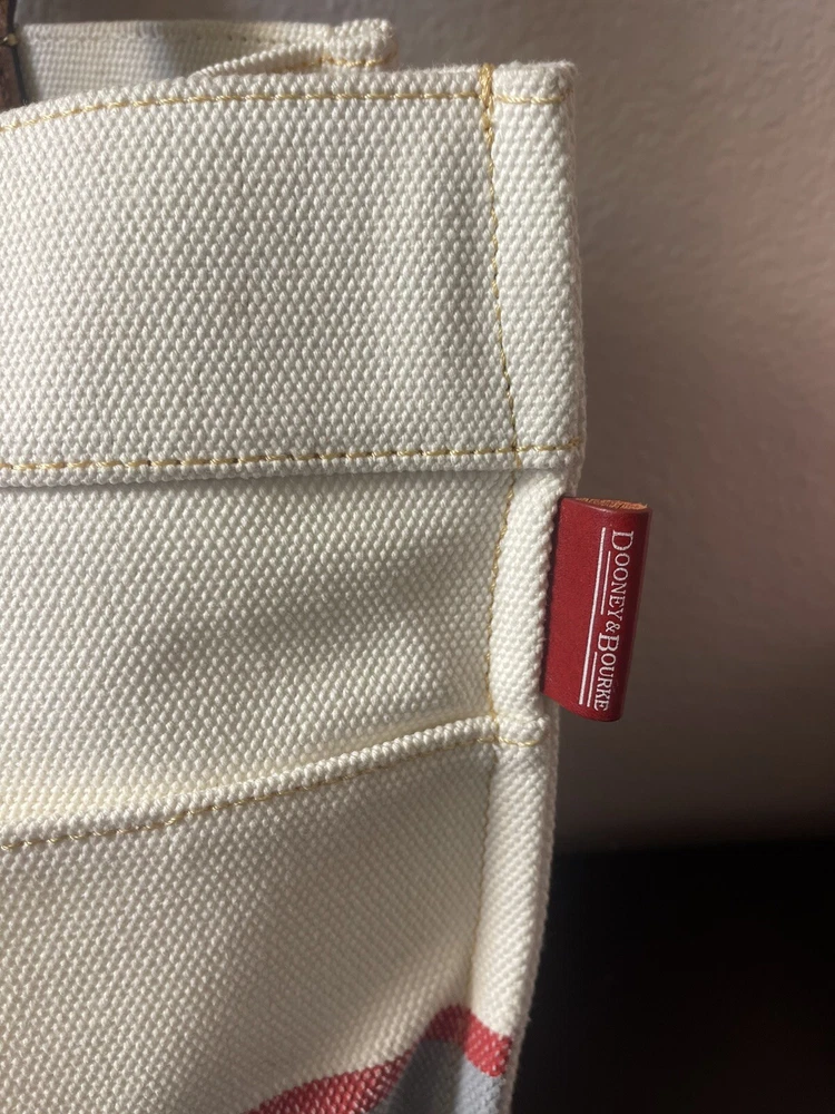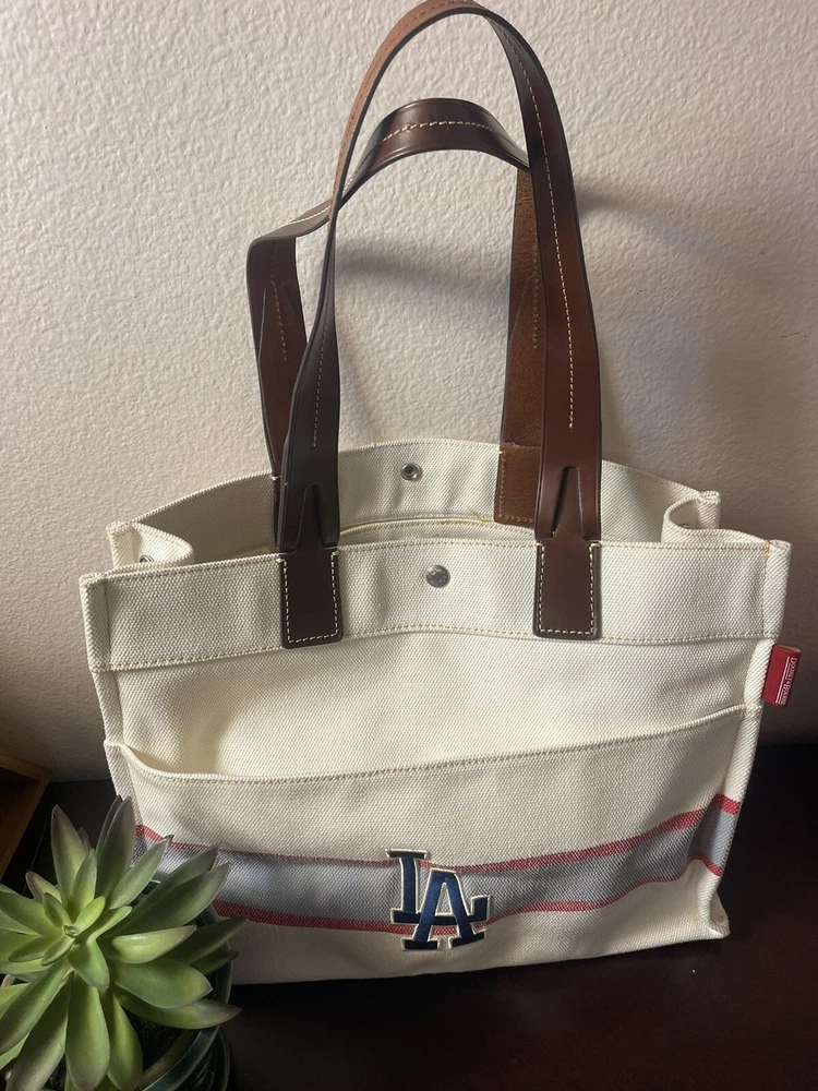 DOONEY & BOURKE MLB Los Angeles Dodgers White Red Blue Canvas Shoulder Tote Bag. Note yellow marker stain inside in picture number 4. Otherwise is practically brand new. Authenticated.