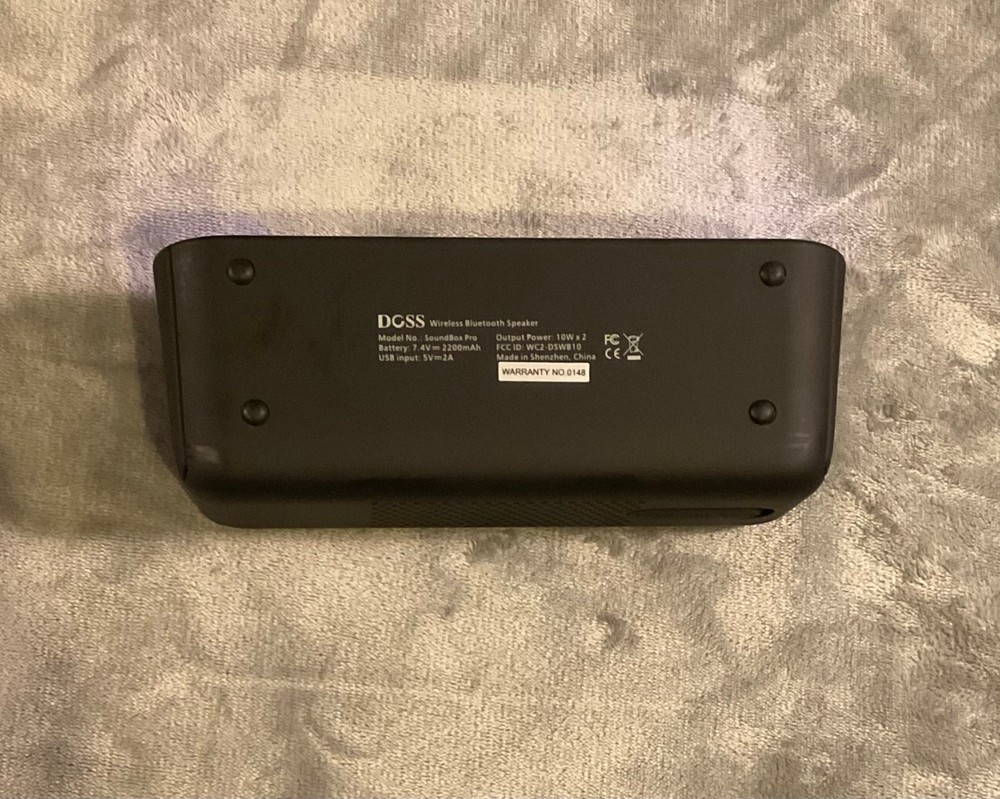 Model Name:SoundBox ProFeatures:Bluetooth, WaterproofProduct Dimensions:4.02 x 8.47 x 3.82 inchesBrand:DOSSSeller Notes:“Like New”Recommended Uses For Product:For Smartphones or TabletsColor:Black, Blue, GrayConnectivity Technology:Bluetooth, USBMaterial:PlasticCompatible Brand:For Acer, For Apple, For ASUS, For Bose, For Sonos, For Sony, For Sony Ericsson, UniversalSpecial Feature:WaterproofRMS Power:20 WModel:SoundBox ProConnectivity:Wireless, BluetoothType:Portable SpeakerAudio Inputs:3.5 mm Jack, AUX, Digital Coaxial RCAMaterials Sourced From:ChinaItem Weight:1.69 poundsShape:RectangularCountry/Region of Manufacture:ChinaCompatible Model:Universal