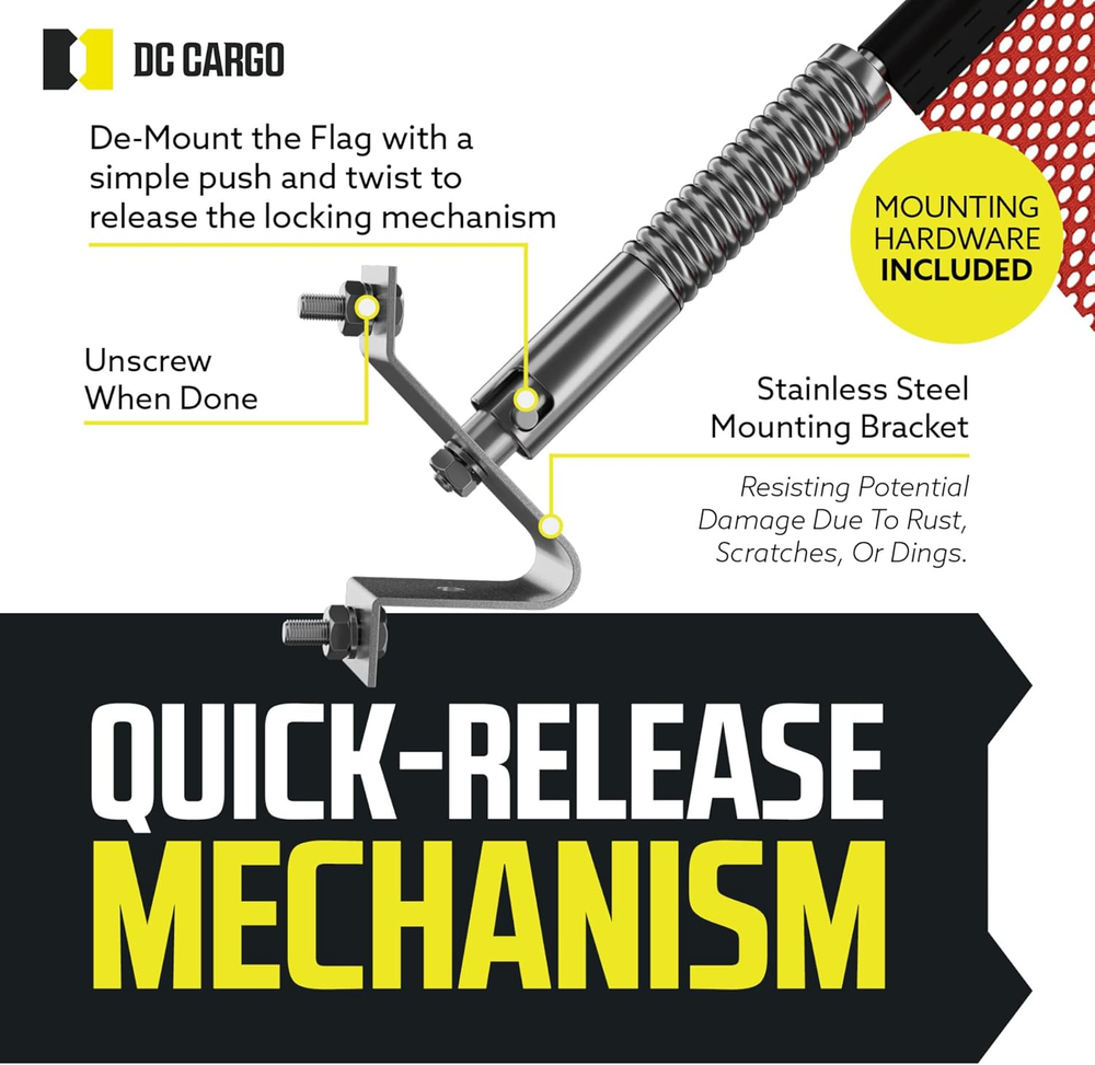 SPRING LOADED DESIGN: The quick and easy disconnect design ensures a quick and effortless installation and removal process for the red safety flag. No more struggling to attach or detach the flag from your truck. EZ MOUNT SYSTEM: Comes with a sturdy mounting bracket for easy installation on any type of truck, making it a hassle-free experience for you. The bracket is designed to hold the flag securely in place, even in windy conditions. HIGH VISIBILITY: The bright red color ensures maximum visibility on the road, making your truck safer for both you and other drivers. The flag is designed to attract attention and signal any potential hazards to other vehicles on the road. DURABLE MATERIAL: Made of premium quality stainless steel, this red safety flag is built to last and withstand the toughest of weather conditions. It is designed to withstand the wear and tear of long-distance travels, keeping your truck visible and protected. USA BASED BRAND: DC Cargo Mall is a reputable and established US brand known for delivering top-notch cargo management solutions for trucks. Enjoy peace of mind knowing that you're using a product from a brand you can trust Product Description " data-position="triggerHorizontal"> We offer a full line of products to meet ALL of your cargo needs. Add to Cart Add to Cart Add to Cart Add to Cart Add to Cart Add to Cart Add to Cart Customer Reviews 4.6 out of 5 stars 84 4.6 out of 5 stars 84 4.3 out of 5 stars 16 4.7 out of 5 stars 1,127 4.6 out of 5 stars 209 4.2 out of 5 stars 22 4.8 out of 5 stars 3,619 Price $71.99 $ 71 . 99 $71.99 $ 71 . 99 $104.99 $ 104 . 99 $118.98 $ 118 . 98 $40.41 $ 40 . 41 $104.99 $ 104 . 99 $139.99 $ 139 . 99 USA BASED COMPANY ✔ ✔ ✔ ✔ ✔ ✔ ✔ Multiple Sizes and Quantities ✔ ✔ ✔ ✔ ✔ ✔ ✔ What's Included EZ Mount Mesh Flags EZ Mount Mesh Flags Bag, Flag, Magnet, Load Sign Rail, Ratchet Strap, Oring Ratchet Straps Bag, Flag, Magnet, Load Sign Tie Down Rails Easy Install ✔ ✔ ✔ ✔ ✔ ✔ ✔ Compatible with Vehicle Type Trailer, Pickup, Truck, Van Trailer, Pickup, Truck, Van Trailer, Truck, Van, Marine Trailer, Pickup, Truck, Van Trailer, Pickup, Truck, Van Trailer, Truck, Van, Marine Trailer, Pickup, Truck, Van Weather Resistant ✔ ✔ ✔ ✔ ✔ ✔ ✔ 1 Born For The Road 2 Unshakable Quality