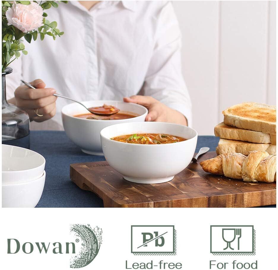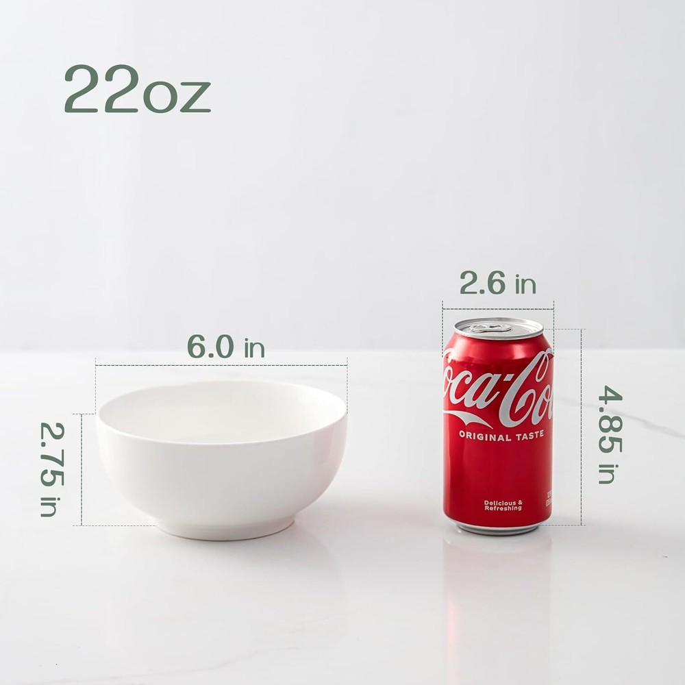 DOWAN 22oz White Ceramic Bowls Set of 4 for Soup and Kitchen Use